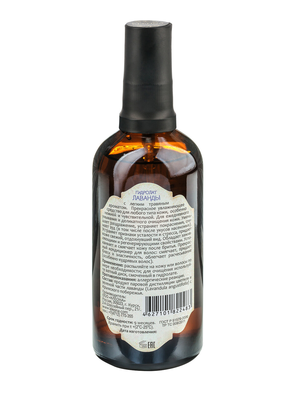 | Состав | продукт паровой дистилляции цветков и зеленой части лаванды (lavandula angustifolia) с крымского побережья |