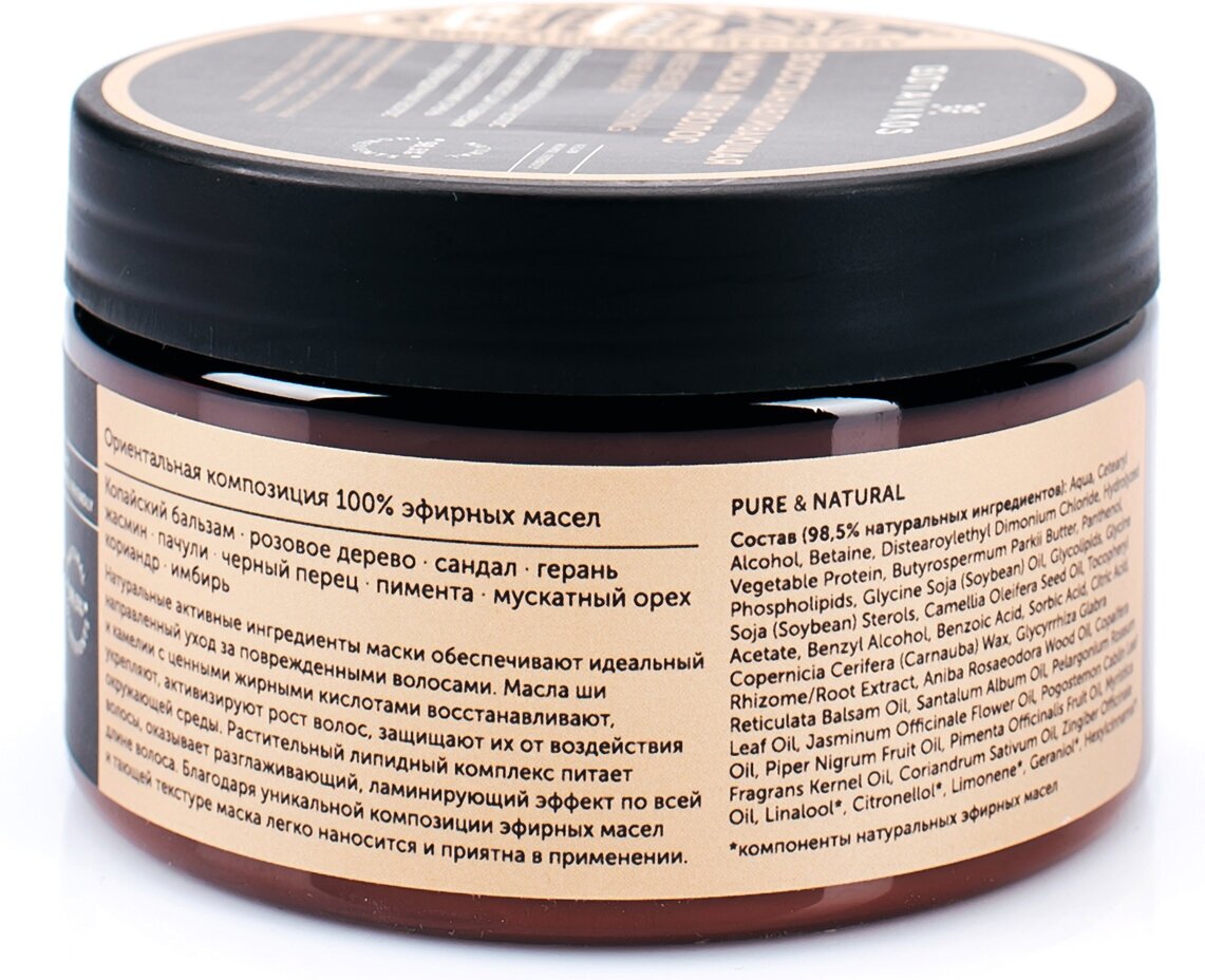 Натуральные активные ингредиенты маски обеспечивают идеальный направленный уход для поврежденных волос. Масла кокоса, арганы и камелии с ценными жирными кислотами оказывают восстанавливающее действие, защищают волосы от внешних воздействий, укрепляют, активизируют их рост. Усиленный липидный комплекс увлажняет и питает волосы и кожу головы, оказывает разглаживающий эффект по всей длине волоса. Благодаря ароматической композиции эфирных масел и тающей текстуре маска легко наносится и приятна в применении.