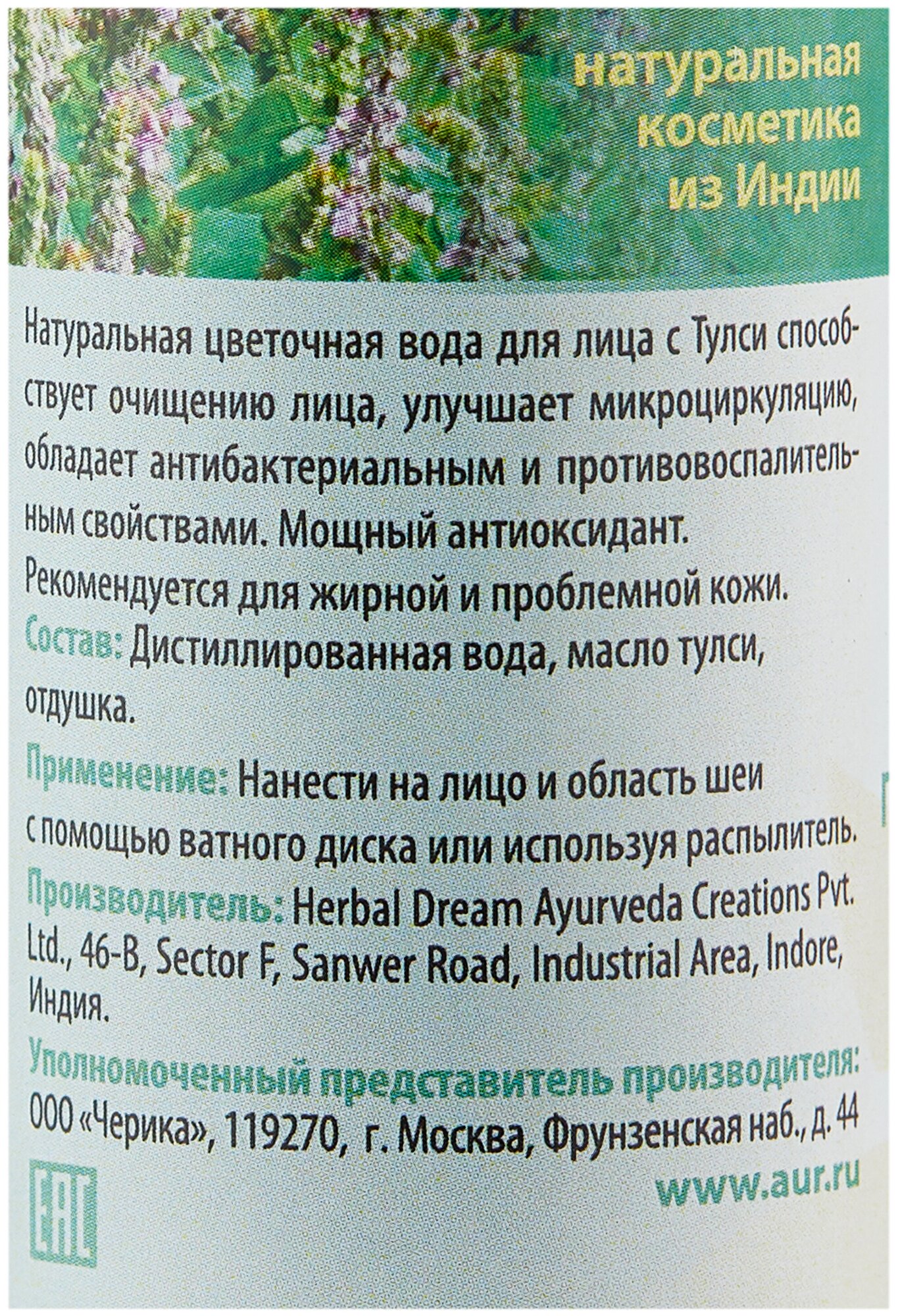 | Состав | Дистиллированная вода, масло тулси, отдушка |