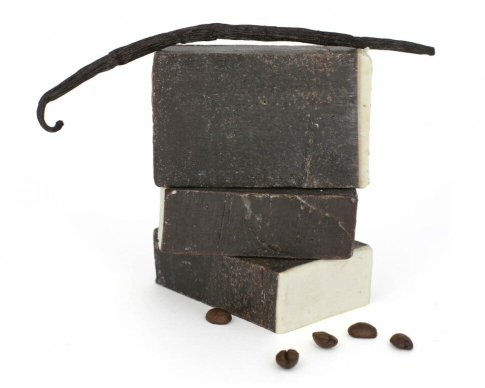 | Состав | натриевые соли масел (оливковое, пальмовое, нераф. какао, касторовое), ванилин, кофе молотый, лактат натрия. |