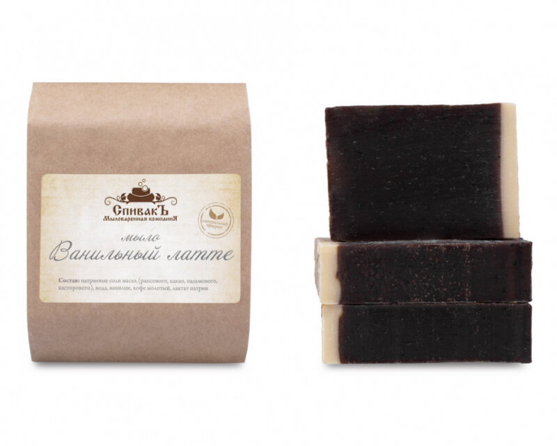 Ванильный Латте - мыло с ванильным ароматом и скраб-эффектом. В роли скраба выступает молотый кофе. О благоприятном воздействии кофе на кожу можно говорить бесконечно, но если коротко, оно тонизирует кожу, уменьшает её возрастные изменения, обладает антиоксидантными и антицеллюлитными свойствами. Еще одной полезной добавкой в составе является какао тертое, благодаря чему мыло имеет насыщенный темно-коричневый цвет.