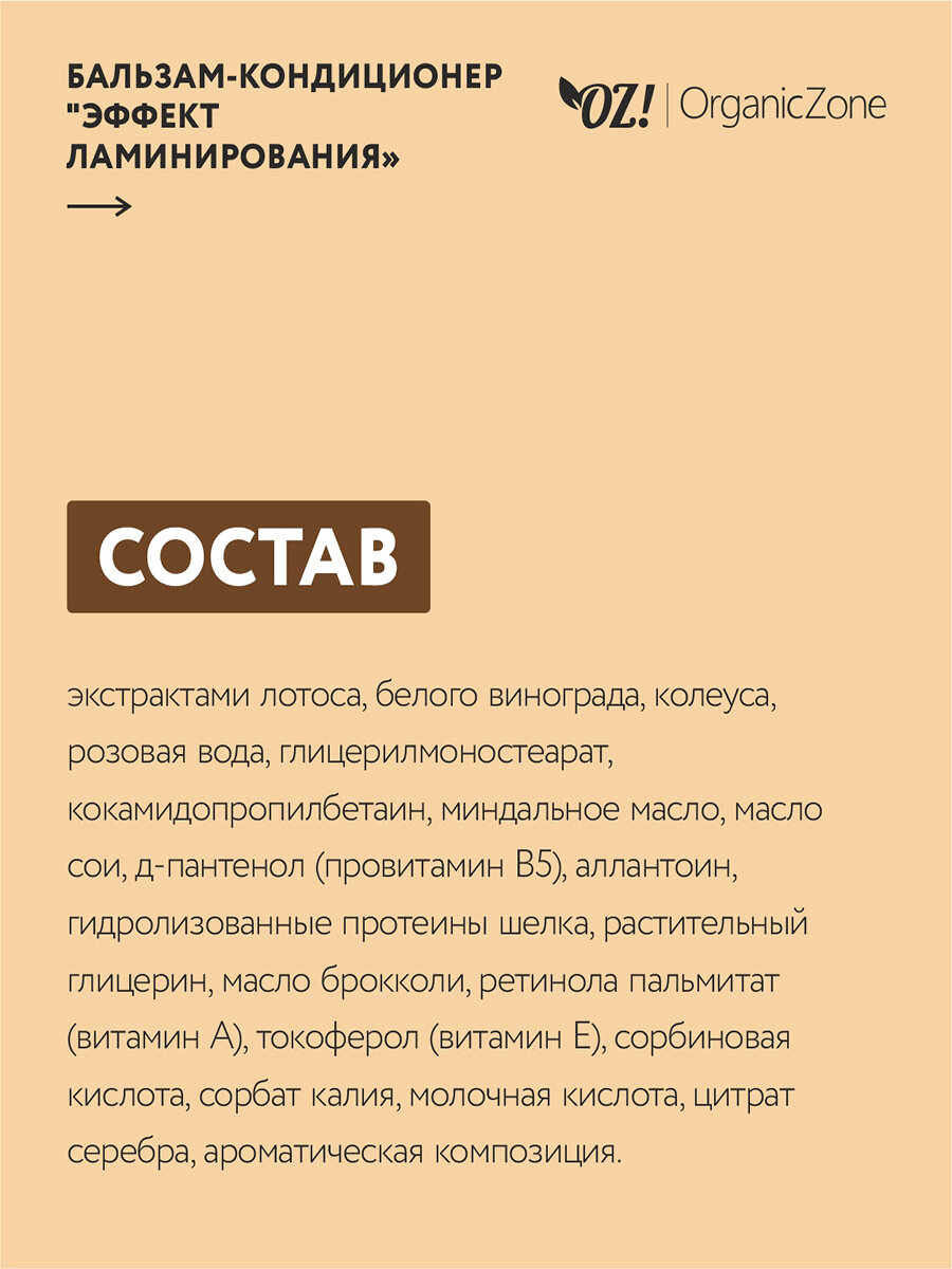 На сегодняшний день товар «OZ! OrganicZone Бальзам для секущихся и ослабленных волос "Эффект ламинирования" 250 мл (OZ! OrganicZone ) (ORZN0114-0250)» можно купить с кешбеком в 1 магазине: Яндекс.Маркет