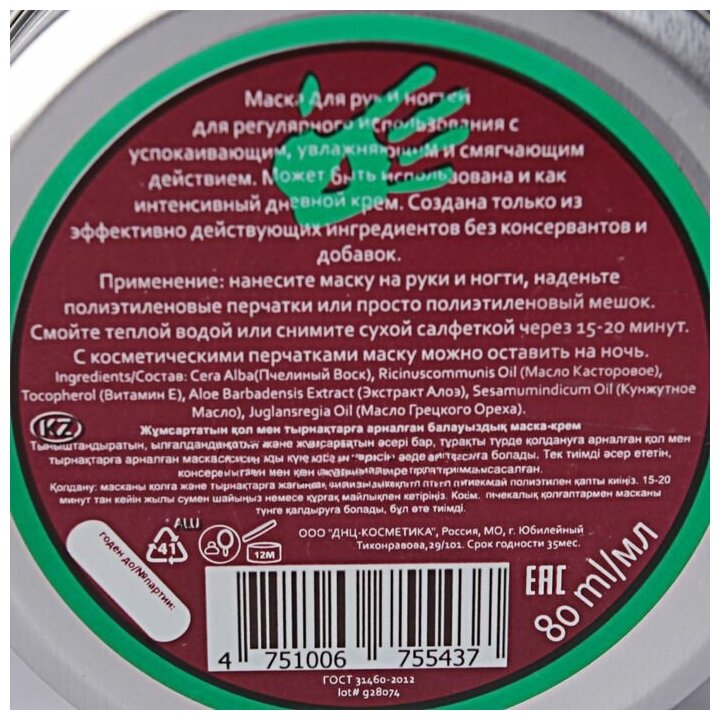 DNC Kosmetika Маска-крем для рук и ногтей смягчающая 80 мл (DNC Kosmetika ) (DNCK0083-0080)