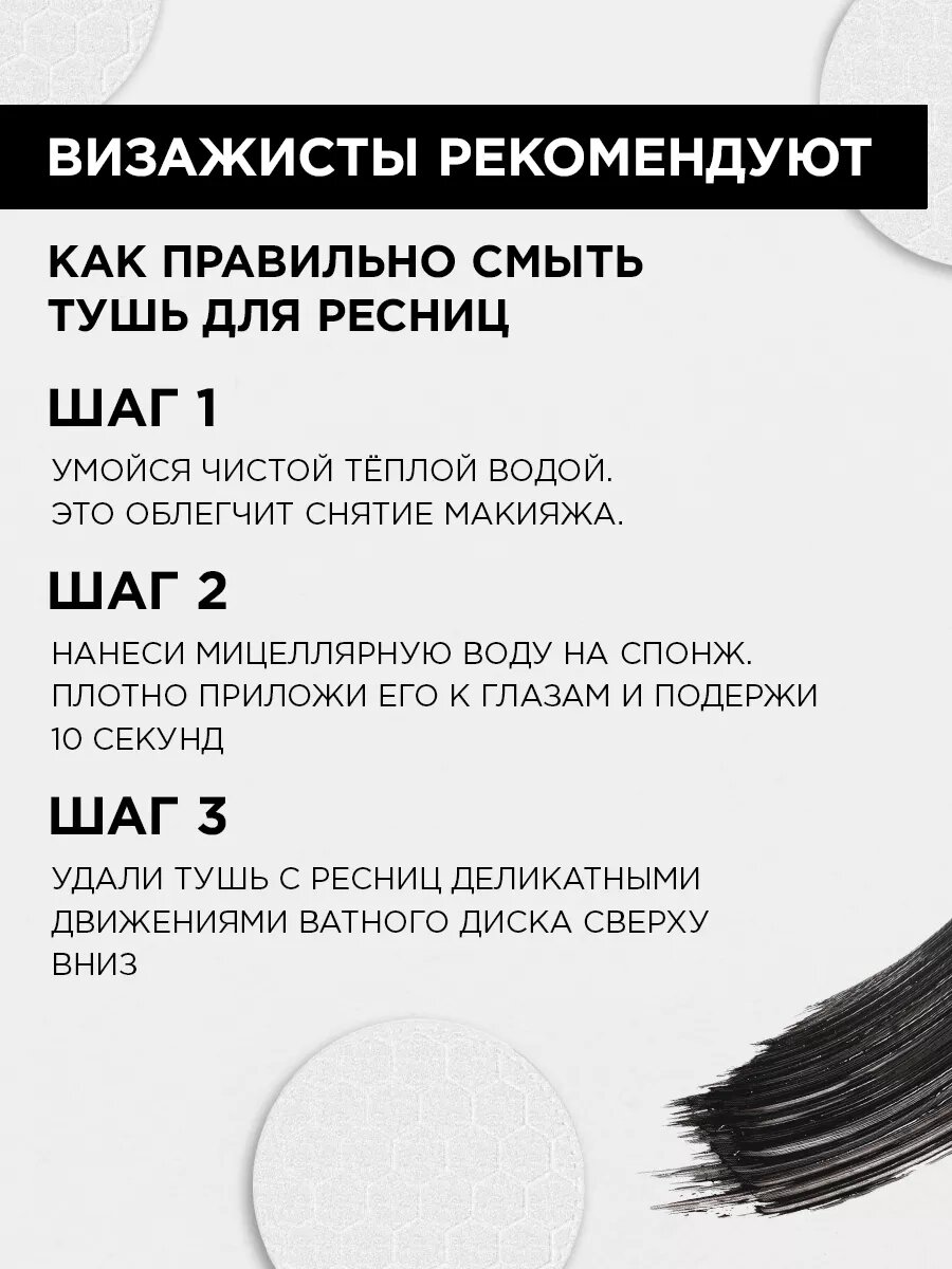 | Способ применения | При нанесении туши, щеточкой совершают зигзагообразные движения по направлению от корней к кончикам ресничек. Завершая мазок, зафиксируйте щеточку на пару секунд. |
