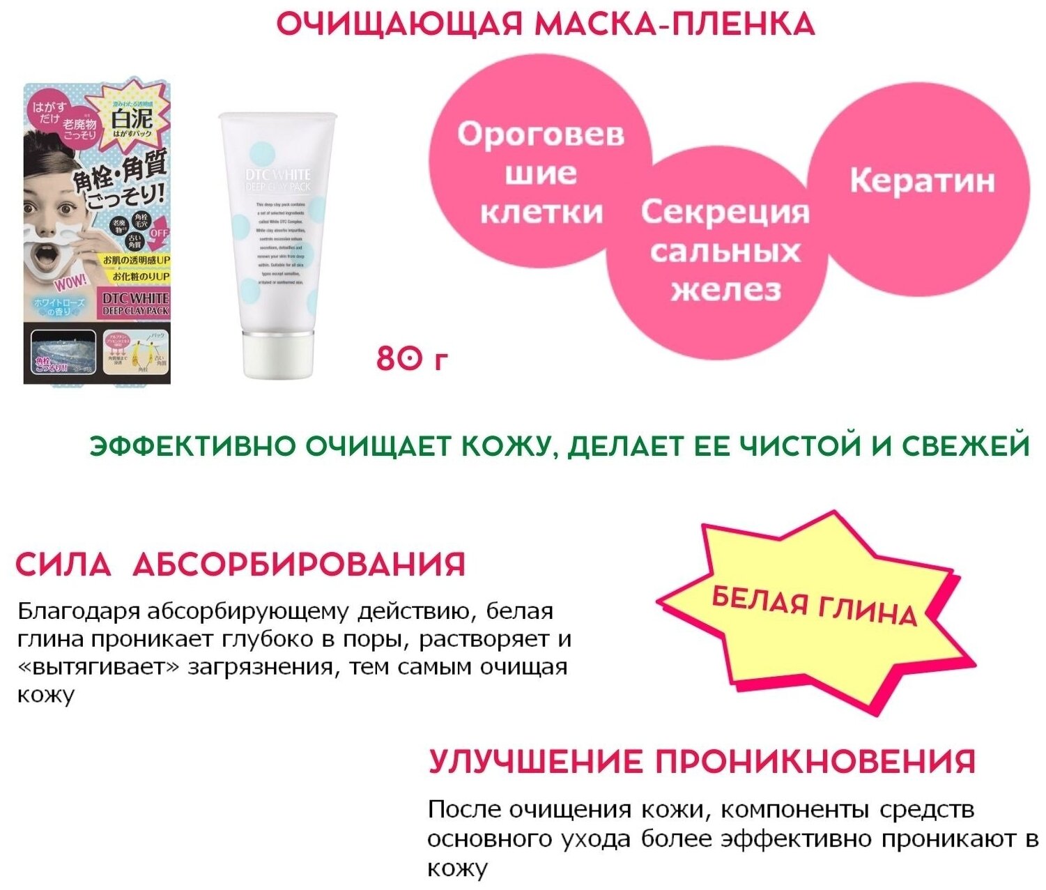Благодаря каолину эффективно очищает поры кожи от загрязнений, излишков кожного жира и ороговевших клеток эпидермиса, удаляет черные точки. Маска содержит комплекс DTC (белая глина, арбутин, экстракт плаценты), который способствует удалению накопленных токсинов, выравнивает тон кожи, делая ее светящейся изнутри. Улучшает эффективность проникновения последующих средств ухода, способствует более равномерному нанесению декоративной косметики. Обладает ароматом белой розы.