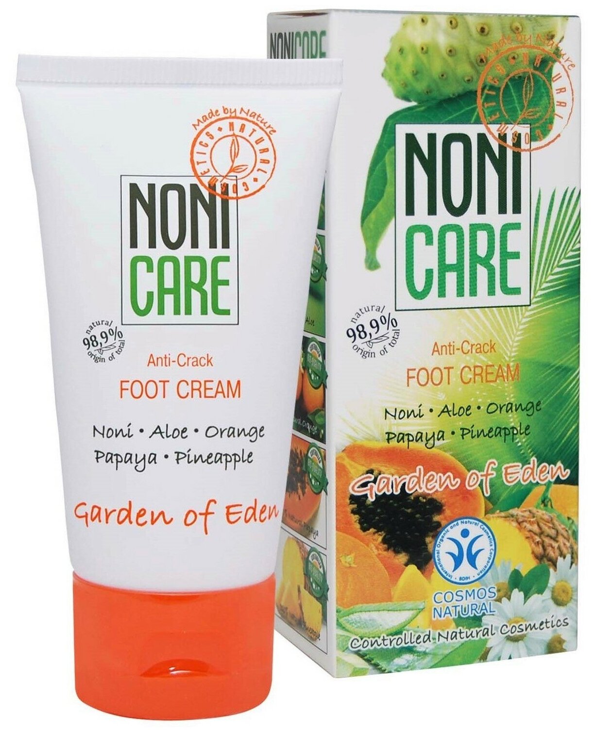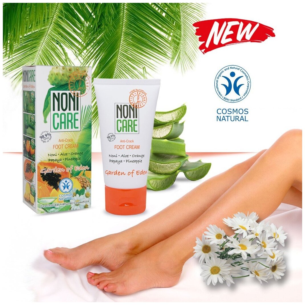 Обладает противомикробным и антибактериальным действием. Сок фрукта нони, входящий в состав крема, содержит витаминно - минеральный комплекс, способствующий ежедневному поддержанию кожного иммунитета. Обеспечивает быстрое заживление ран и трещин, является настоящим спасением для сухой, потрескавшейся кожи ног! Экстракт папайи и ананаса способствует процессу обновления клеток, устраняет шелушение и огрубение, прекрасно питает, смягчает кожу ног. Ромашка обеспечивает дезинфицирующий и противовоспалительный эффект.
