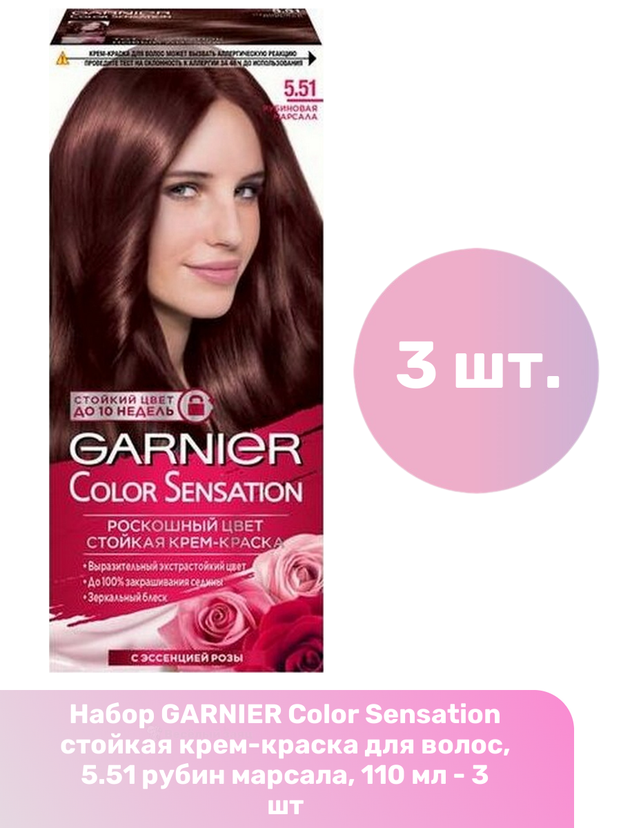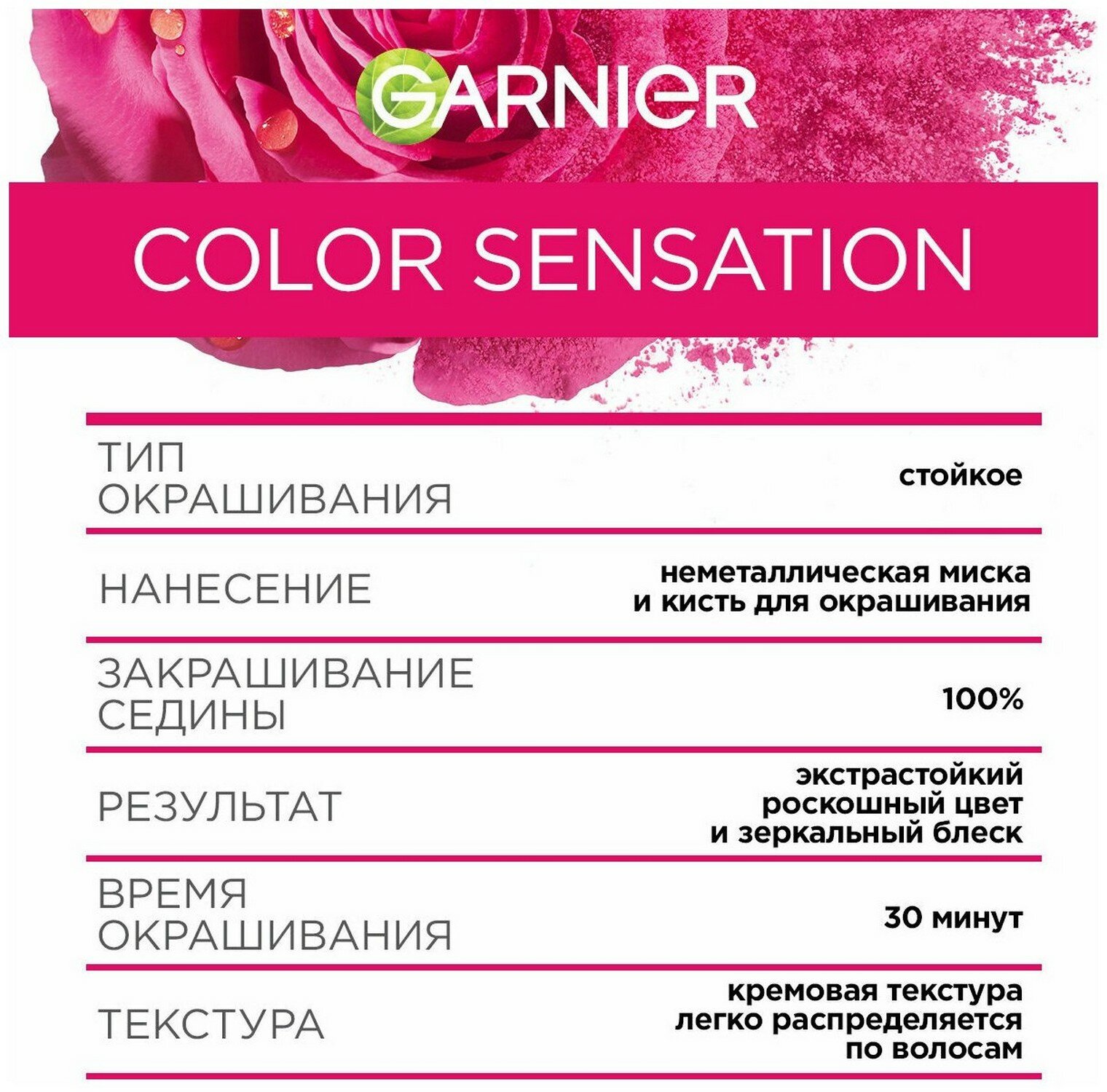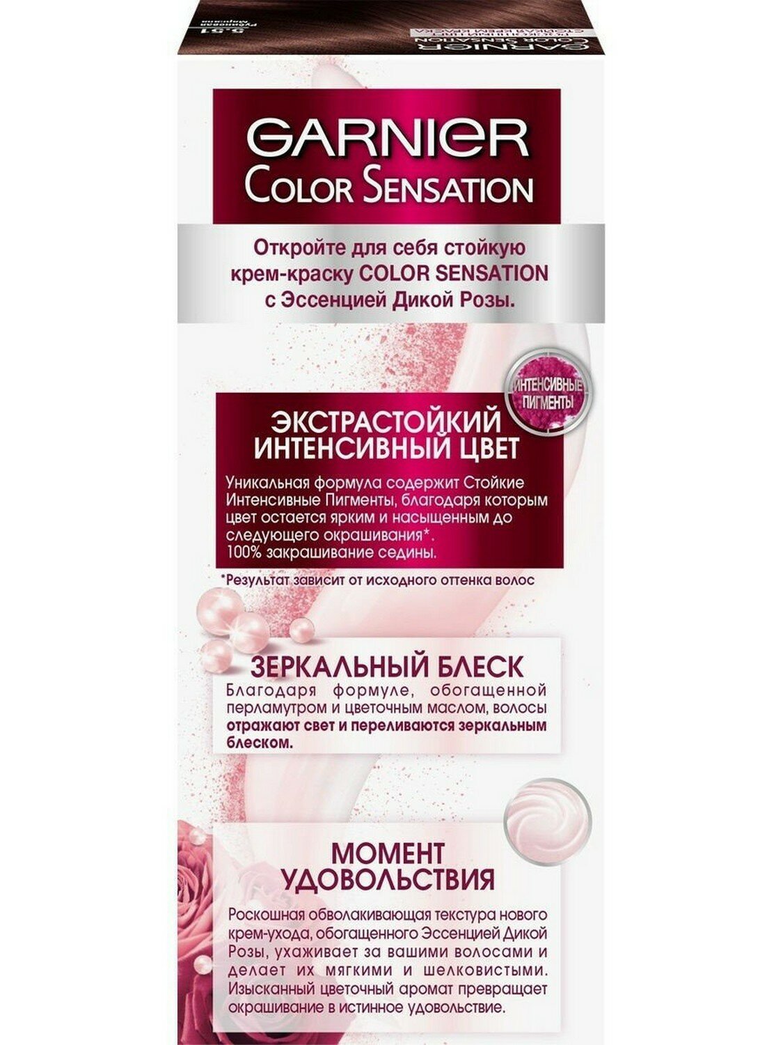 Краски Color Sensation — линия стойких средств, которые позволяют волосам стать яркими и ещё более привлекательными. Средства этой серии отличаются формулой с натуральными компонентами — перламутром и эссенцией дикой розы. Крем-краска с обволакивающей текстурой не течёт во время нанесения. Гарантирует до 100% закрашивания седины, точное попадание в цвет и зеркальный блеск волос. Особый крем из набора, имеющий приятный аромат, ухаживает за локонами, делая их шелковистыми.