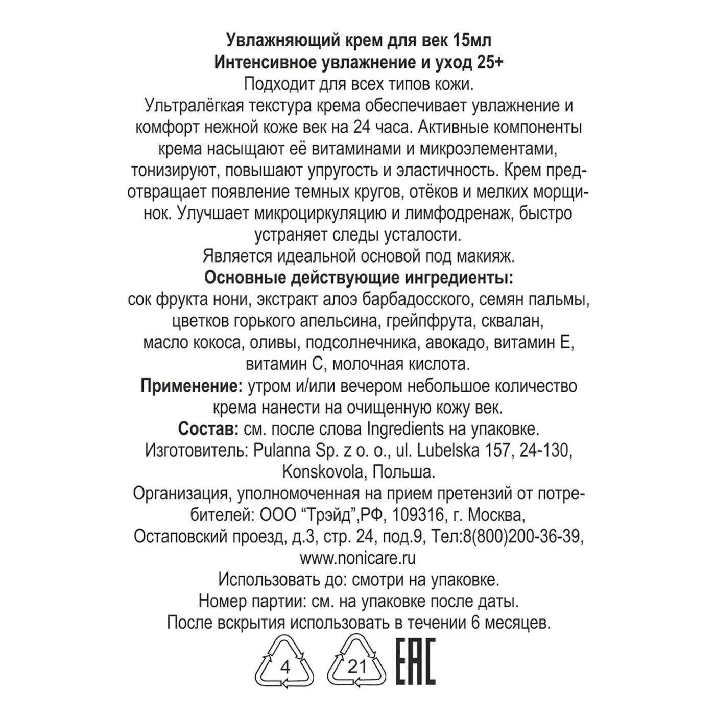 - Увлажняющий крем для век "Интенсивное увлажнение и уход 25+" NoniСare, обзор