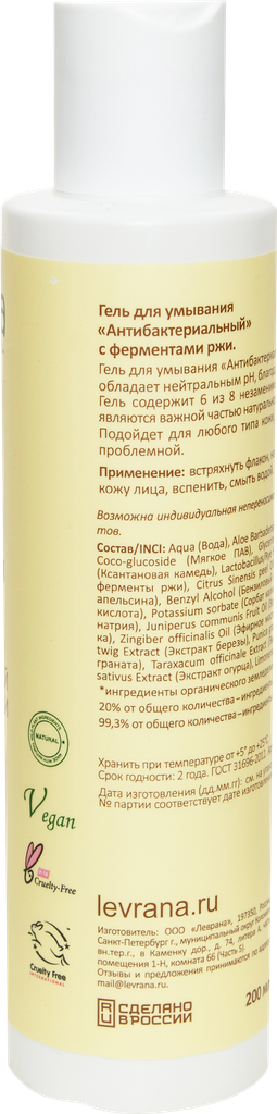 Levrana Гель для умывания "Антибактериальный" с ферментами ржи мини 50 мл (Levrana ) (LEVR0209-0050)