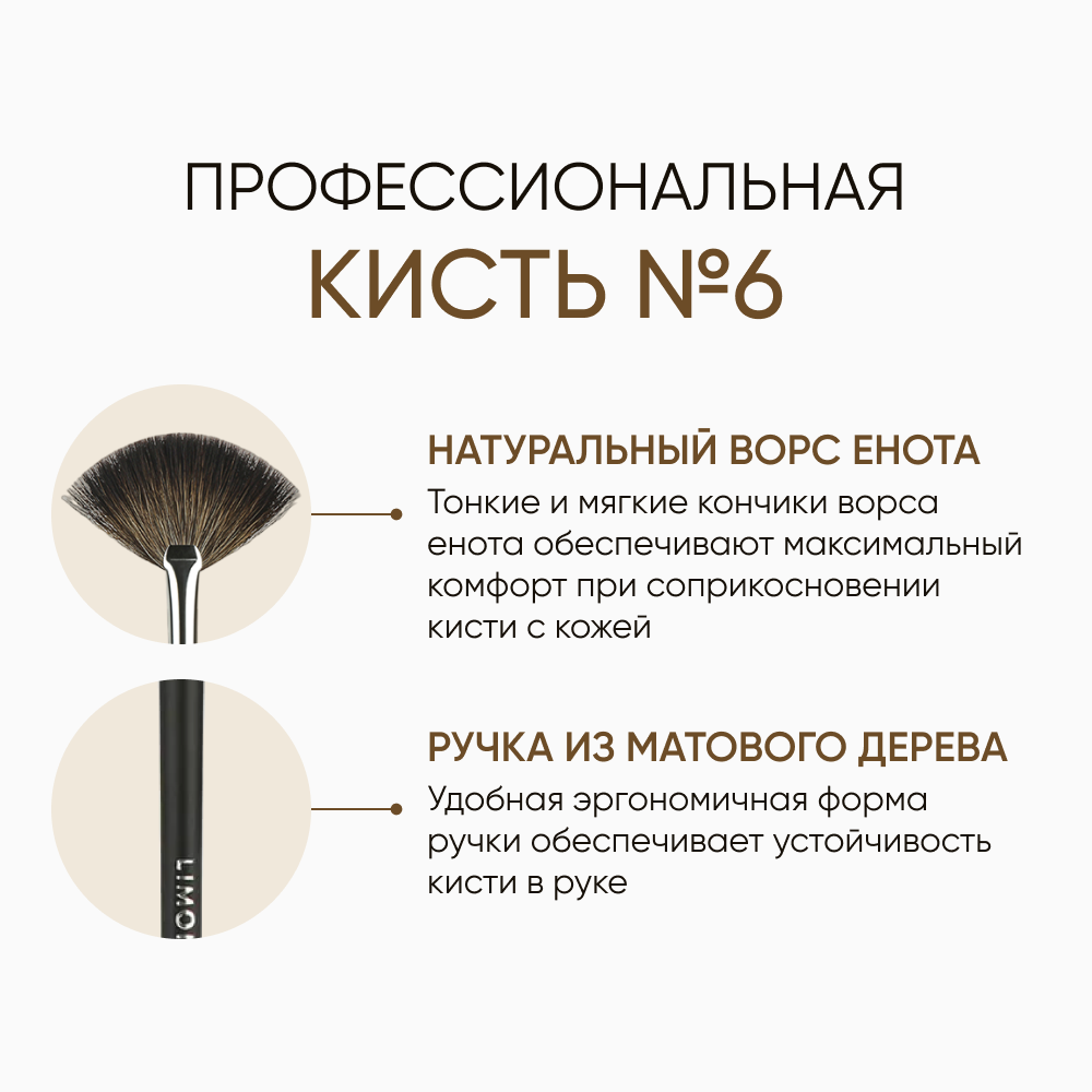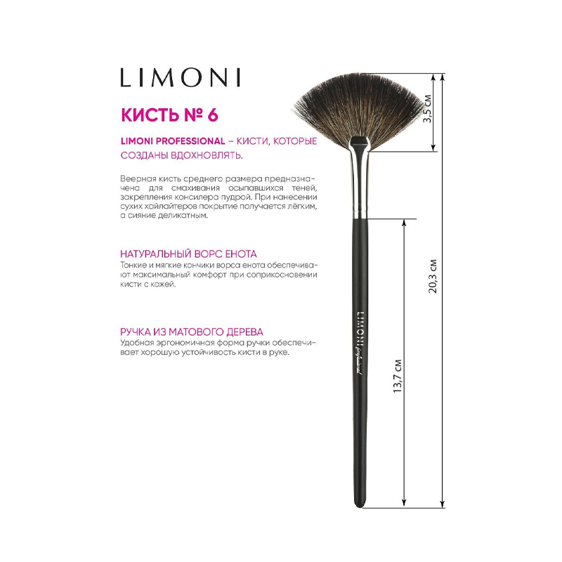 Limoni Кисть №06 веерная средняя для смахивания излишков косметических средств (енот) 1 шт (Limoni ) (LIM10004)