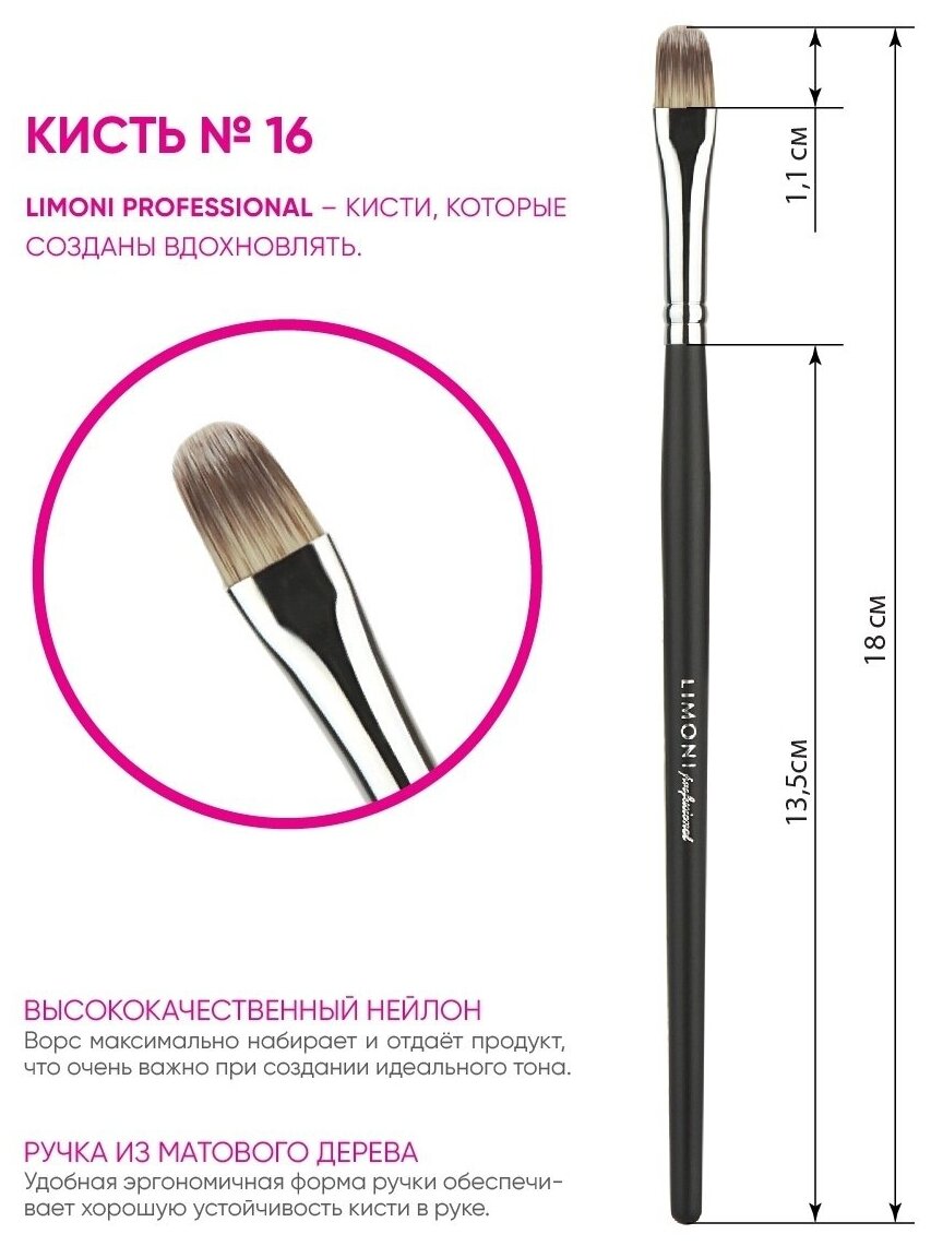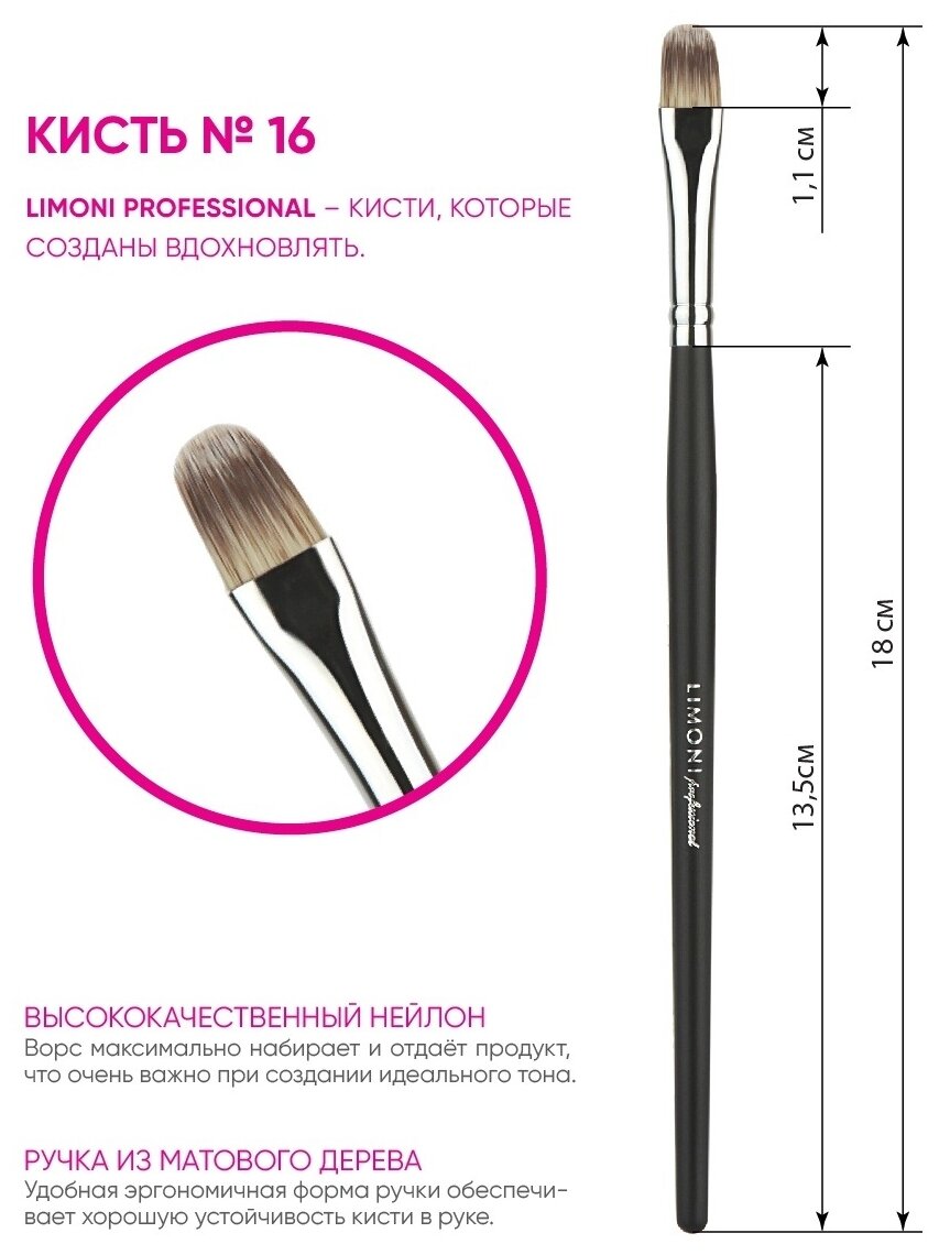 Limoni Кисть №16 для жидких тональных средств и корректоров (нейлон) 1 шт (Limoni ) (LIM10011)