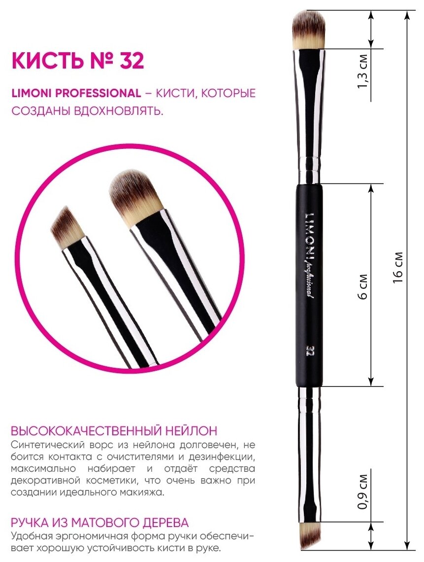 Limoni Кисть №32 двусторонняя для жидких тональных средств и подводок (нейлон) 1 шт (Limoni ) (LIM10020)