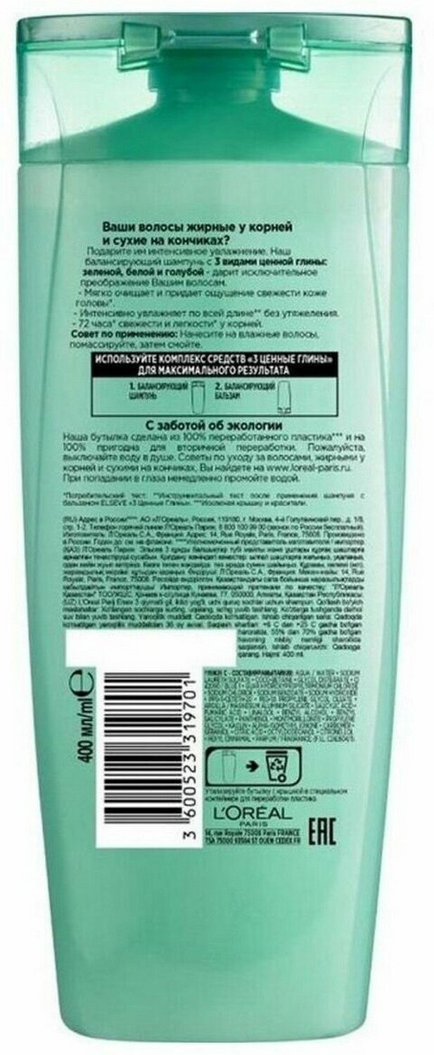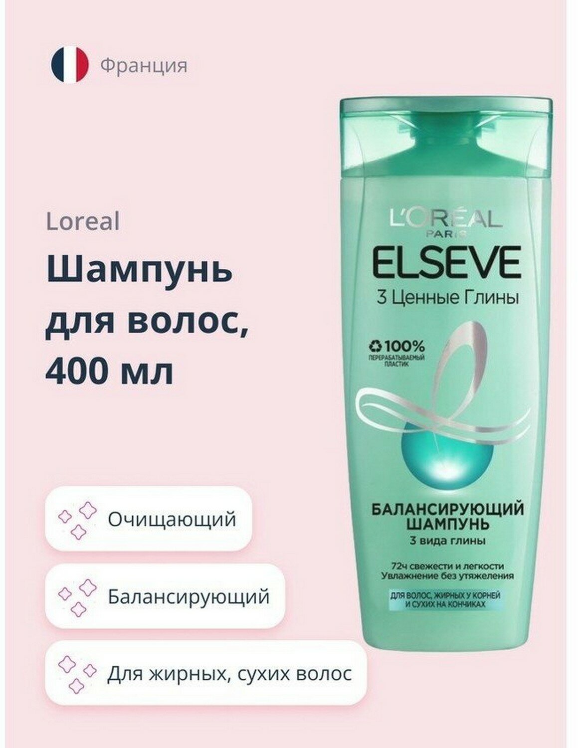 L’Oreal Шампунь для волос "3 Ценные глины" 400 мл (L’Oreal ) L'OREAL (Gra226)