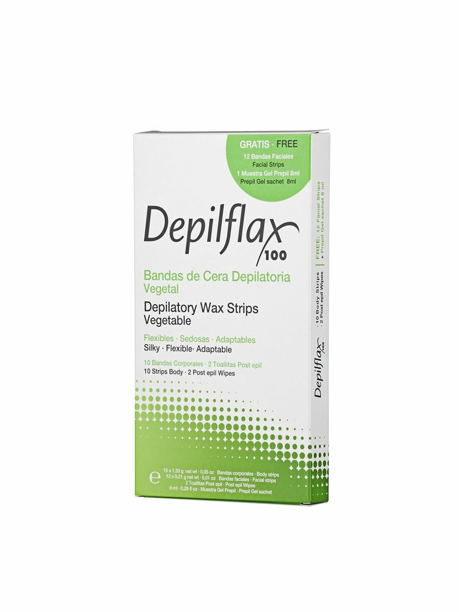 Полоски с воском Depilflax - деликатный и бережный способ избавления от нежелательных волосков на теле. Основным их преимуществом является экономичность и удобство использования в домашних условиях. В наборе: полоски для тела 10 шт., полоски для губ 2 шт., гель перед депиляцией 8 мл., салфетка-уход для снятия остатков воска, с маслом 2 шт.