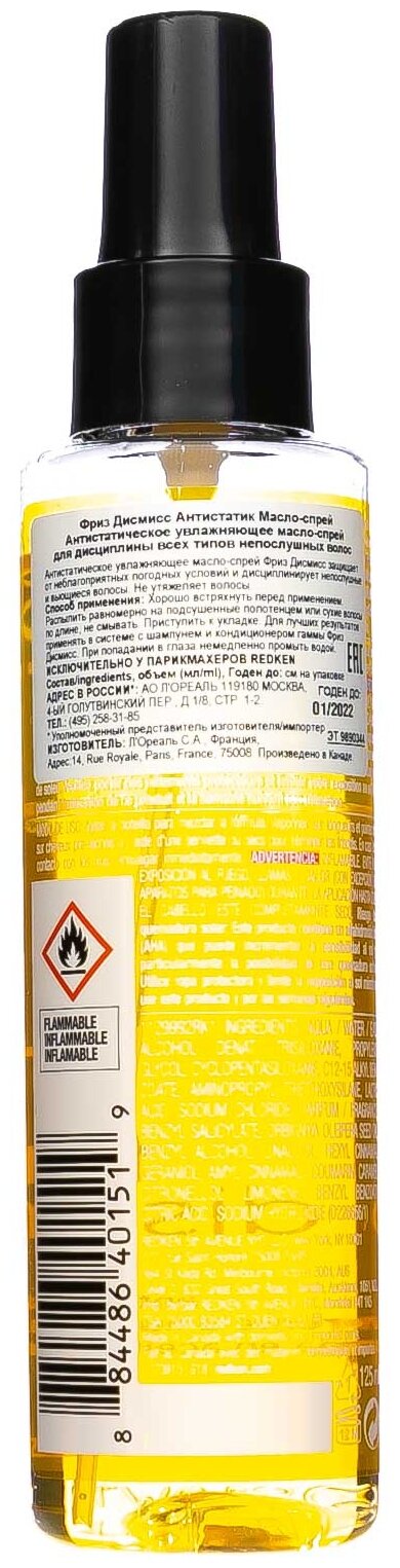 Фриз Дисмисс Антистатик Масло-спрей - это антистатическое увлажняющее масло-спрей для дисциплины всех типов непослушных волос.