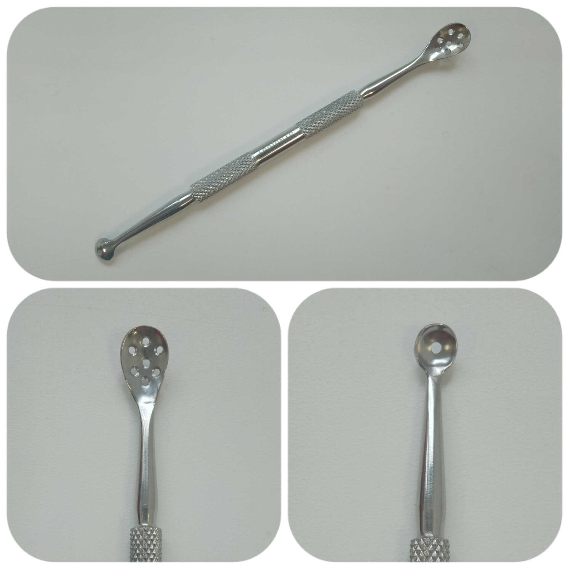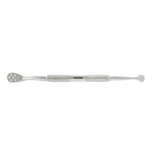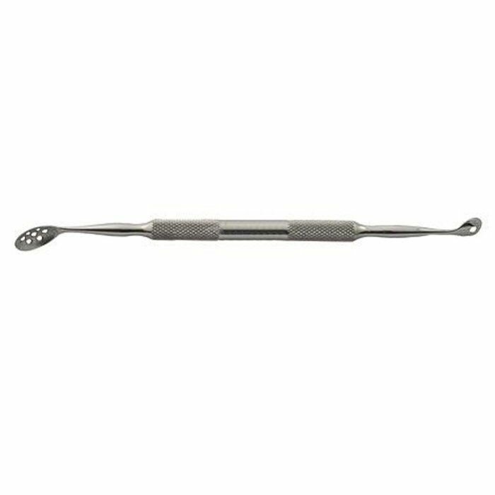 Ложка УНО двухсторонняя 13 см PC-176-(1/7) - это удобный инструмент, используемый для механической чистки лица и ушных раковин. На одном конце инструмента расположена ложечка с семью отверстиями для деликатного очищения рогового слоя. На другом конце находится петля для локального использования. За счет толстых стенок петли инструмент не травмирует кожу при очищении угря. Таким инструментом удобно работать в труднодоступных местах. Ребристая ручка обеспечивает надежную фиксацию в руке. Может быть дезинфицирована в любых растворах.