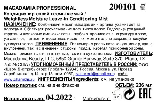 Сервис сравнения цен СкидкаГИД предлагает сравнить цены на товар «Macadamia Спрей-кондиционер несмываемый 236 мл (Macadamia ) (200101)»