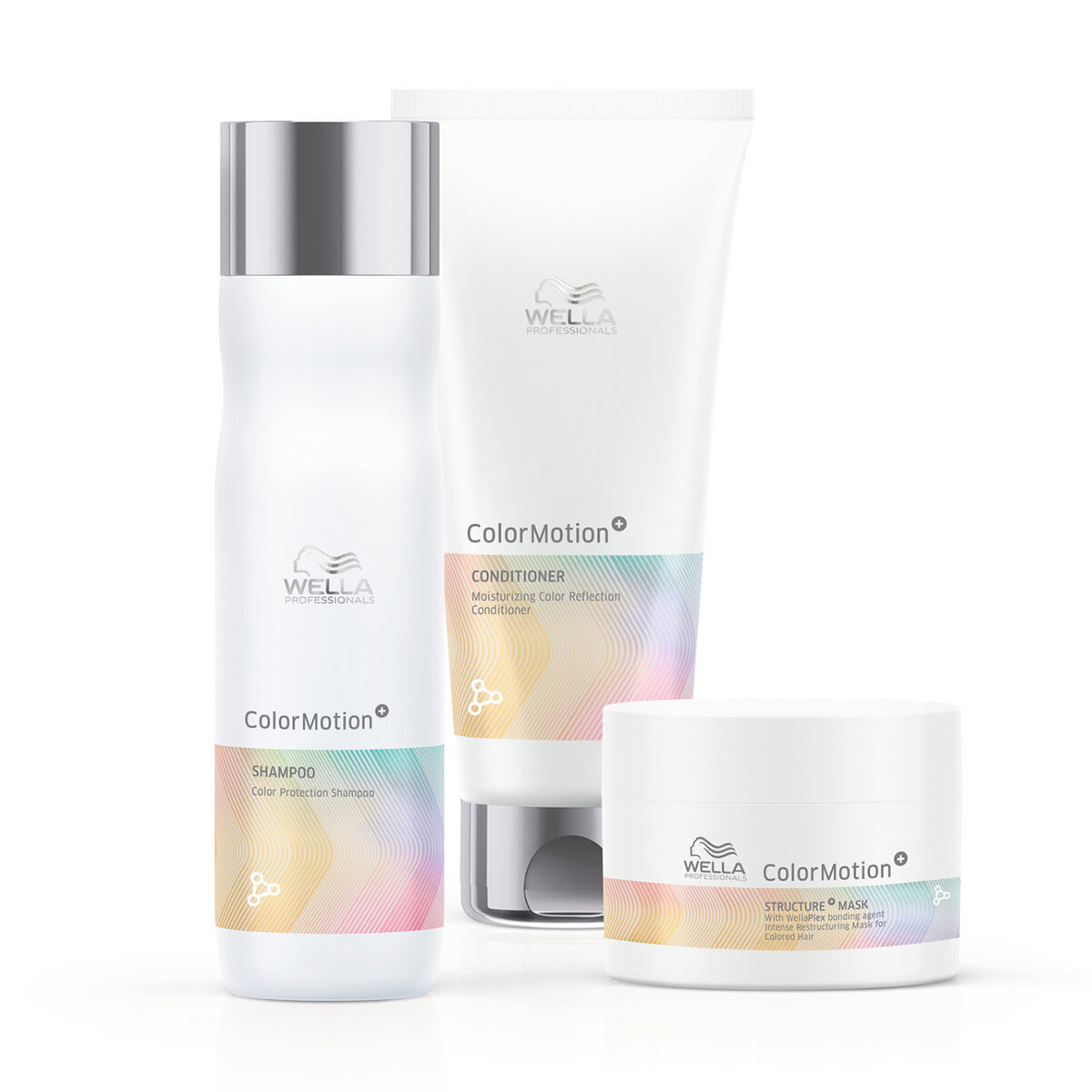 Нанесите небольшое количество бальзама Wella Color Motion+ на чистые влажные волосы, распределите равномерно и затем тщательно смойте.
