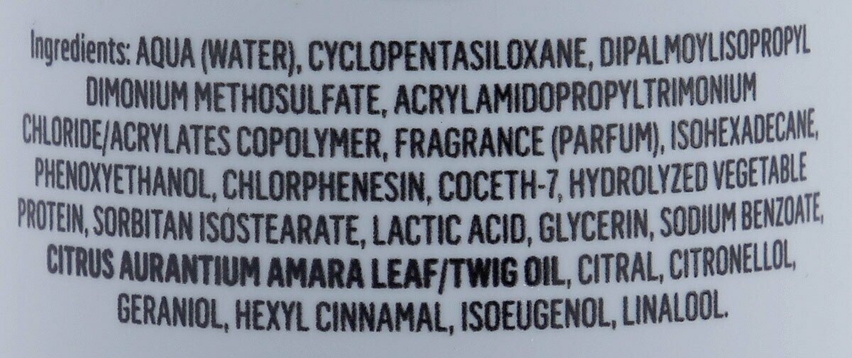 Увлажняет и укрепляет структуру тонких волос изнутри. Заполняет, придает эластичность. В результате волосы приобретают объем, оставаясь легкими. Натуральные компоненты на основе микропротеинов органических сои и риса в составе действуют как «строительный материал» для волокон волос. Свежий цитрусовый аромат дополнен цветочными нотами.