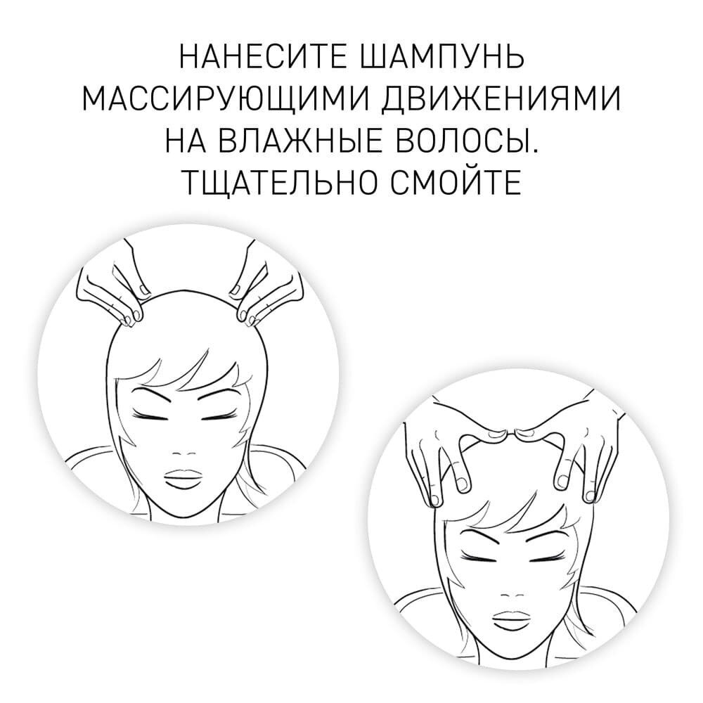 Равномерно нанесите мягкими массирующими движениями на влажные волосы. Тщательно смойте водой.