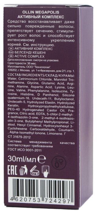 Средство восстанавливает даже сильно поврежденные волосы, препятствует сечению, стимулирует рост волос и способствует интенсивному укреплению корней. Оказывает мощное увлажняющее действие, придает блеск и защищает цвет от потери яркости. Увеличивает объем и плотность волос. При применении «Активного комплекса» в сочетании с другими продуктами Megapolis действие всех активных компонентов мгновенно усиливается.