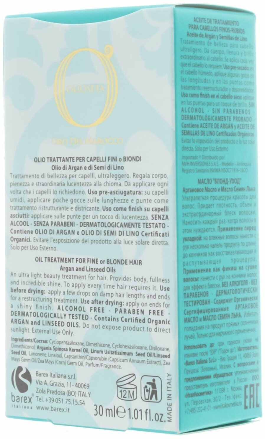 Barex Масло Блонд-Уход с маслом арганы и семян льна 100 мл (Barex ) (130040)