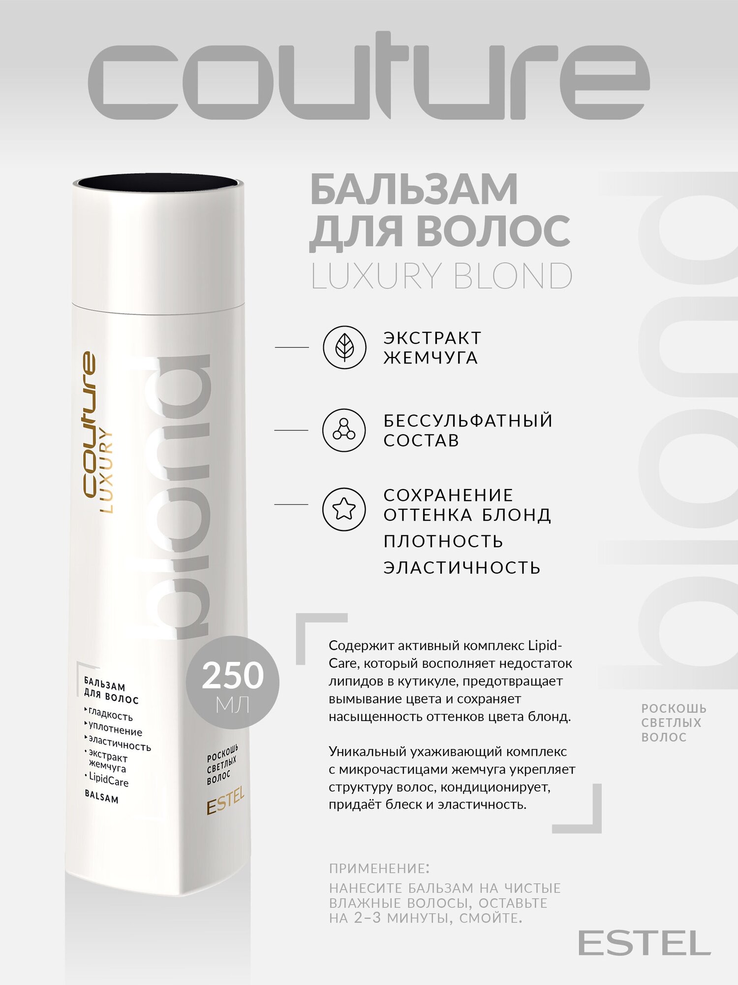 Уплотнение структуры волоса, сбалансированное увлажнение, солнечное сияние и насыщенность цвета блонд – всё это возможно благодаря формуле бальзама LUXURY BLOND. Влияя на каждый волос изнутри, восстанавливая и питая его, компоненты бальзама позволяют наслаждаться неизменным цветом, сиянием, мягкостью, гладкостью и эластичностью полотна волос.