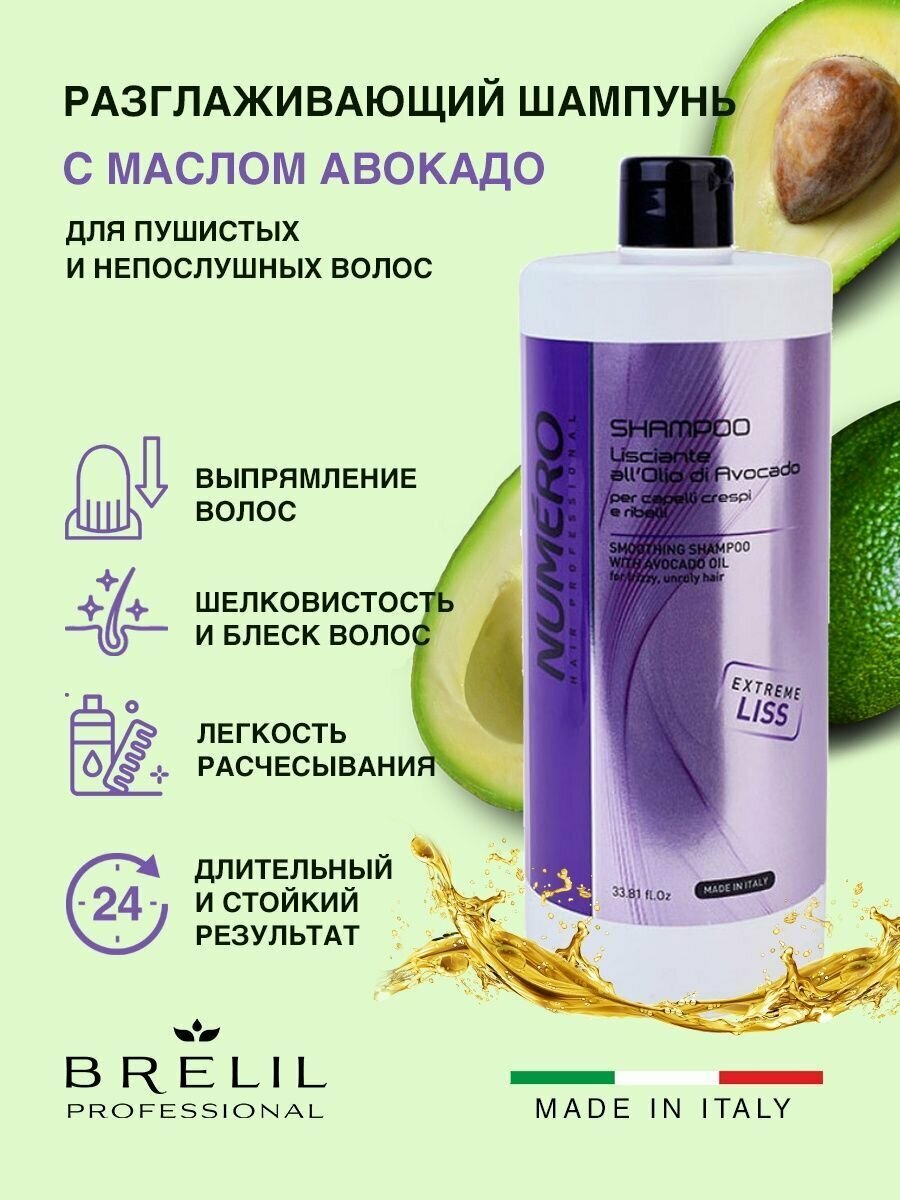 Шампунь Brelil Numеro Liss Shampoo предназначен для выпрямления непослушных и вьющихся волос. Масло авокадо содержит витамины, аминокислоты, микроэлементы, благодаря чему волосы становятся гладкими, послушными, блестящими и шелковистыми. Облегчает расчесывание, без утяжеления.