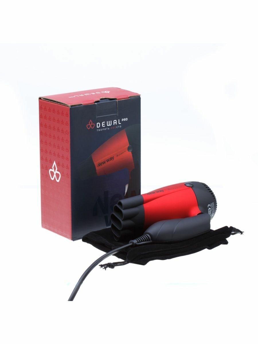 Он легко поместится практически в любую сумочку, поскольку ручка фена складывается, в 2 раза уменьшая его размеры. Несмотря на маленькие габариты и небольшой вес фен имеет достаточно большую мощность и сильный поток воздуха. В комплекте идет специальная дорожная косметичка для фена, которая дополнительно защитит фен от попадания влаги. Оставьте классические фены для работы в салоне и возьмите с собой в путешествие компактный фен Dewal Blue.