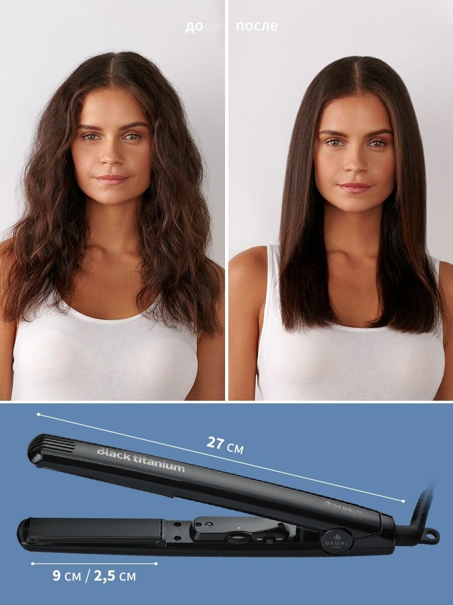 Dewal -выпрямители Black Titanium 25х90 мм с терморегулятором титаново-турмалиновое покрытие 105 Вт (Dewal ) (DWL83)