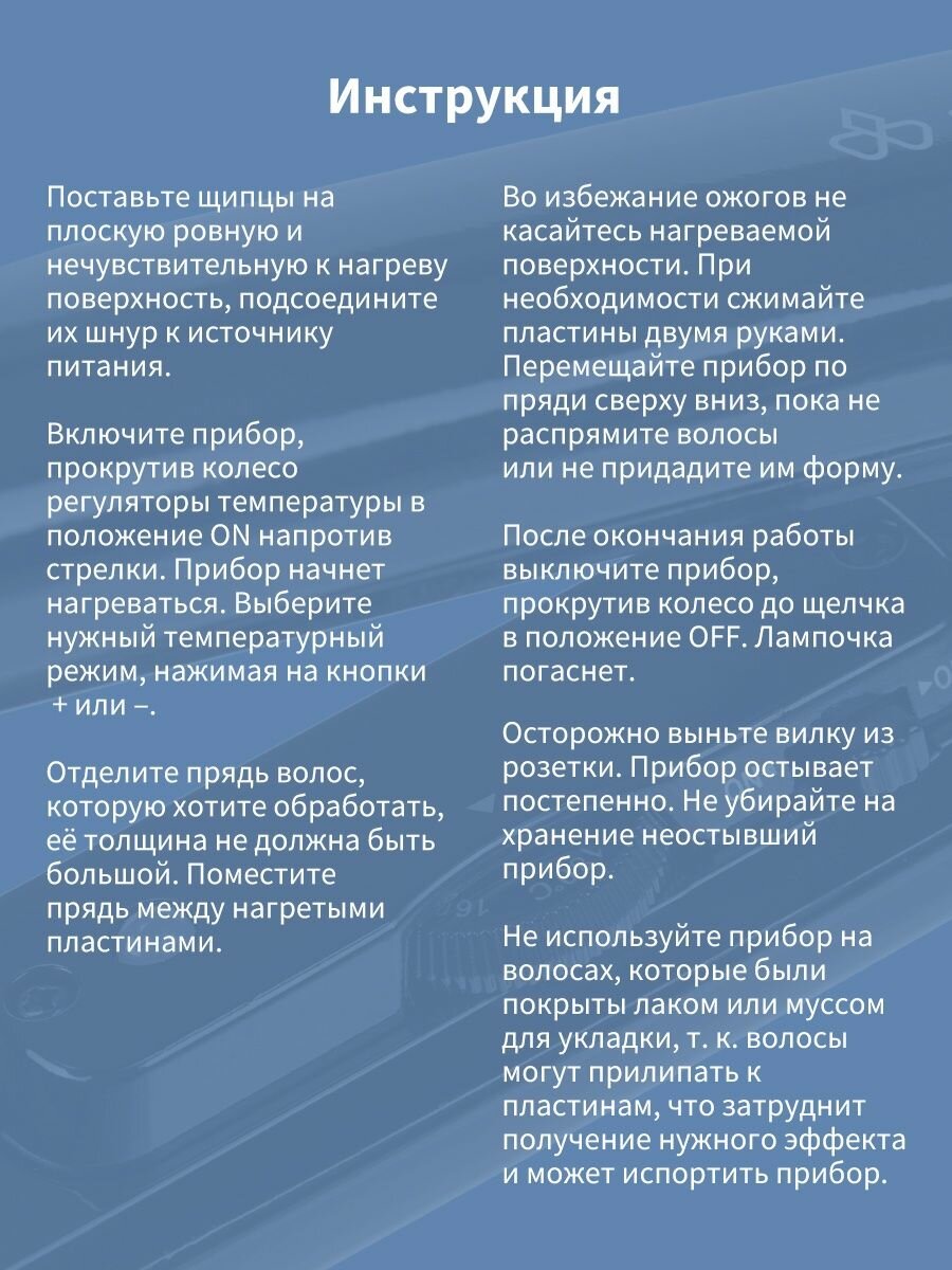 | Комплектация | щипцы, документация, упаковка |