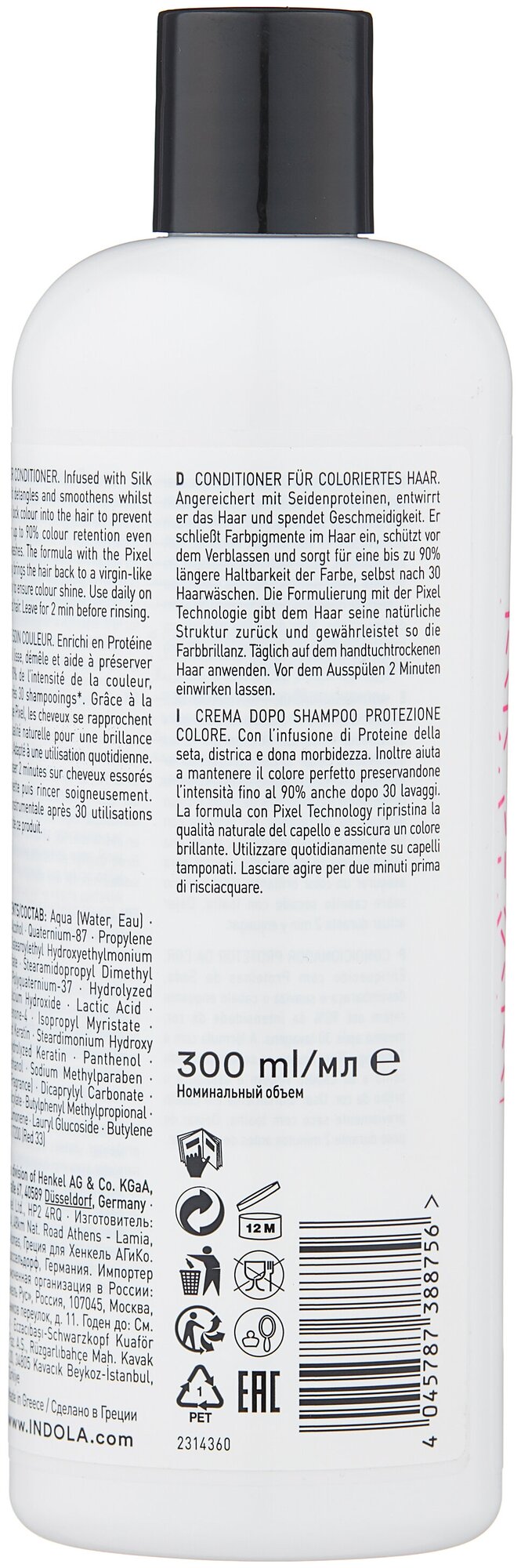 Кондиционер для окрашенных волос обогащенный протеинами шелка, распутывает и смягчает волосы, при этом запечатывает цвет внутри волоса и препятствует его потере на 90% даже после 30 применений шампуня. Формула с Пиксельной Технологией придает волосам непревзойденное качество и обеспечивает блеск.