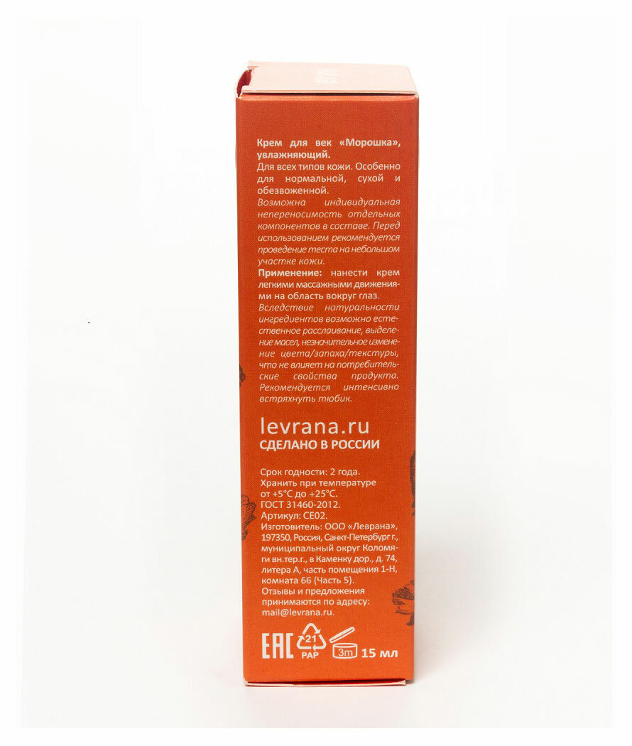Заказываю третий раз крем для век с морошкой от леврана,мне очень понравился, приятный по текстуре,впитывается достаточно быстро, и действительно отека меньше, очень хорошо увлажняет, да и синяков меньше, единственный крем который мне подошёл, пользовалась утром и вечером ,под макияж тоже хорошо ложится. За такую цену действительно хороший крем!!!
