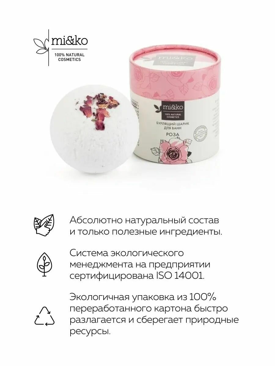 Mi&Ko Бурлящий шарик для ванн "Роза" 185 г (Mi&Ko ) (MIKK0053-0185)