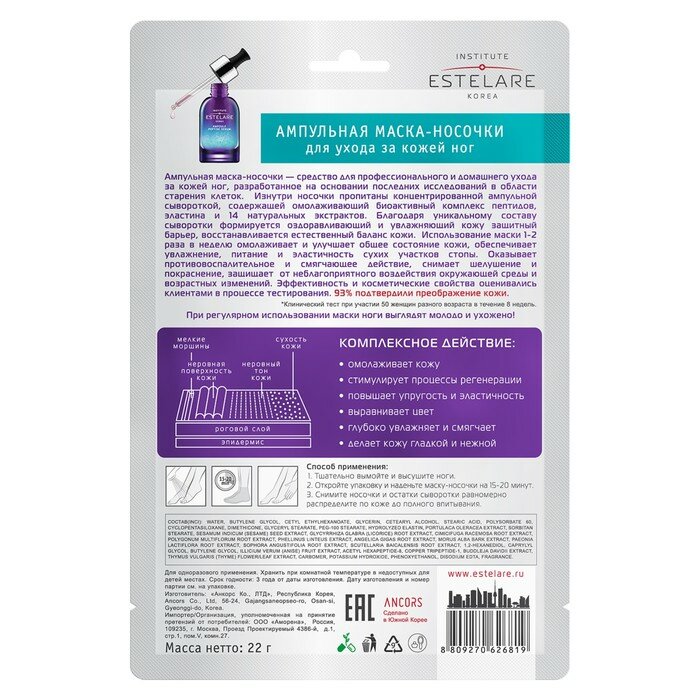Estelare Ампульная маска-носочки для ухода за кожей ног 22 г (Estelare ) носочки 22 г.