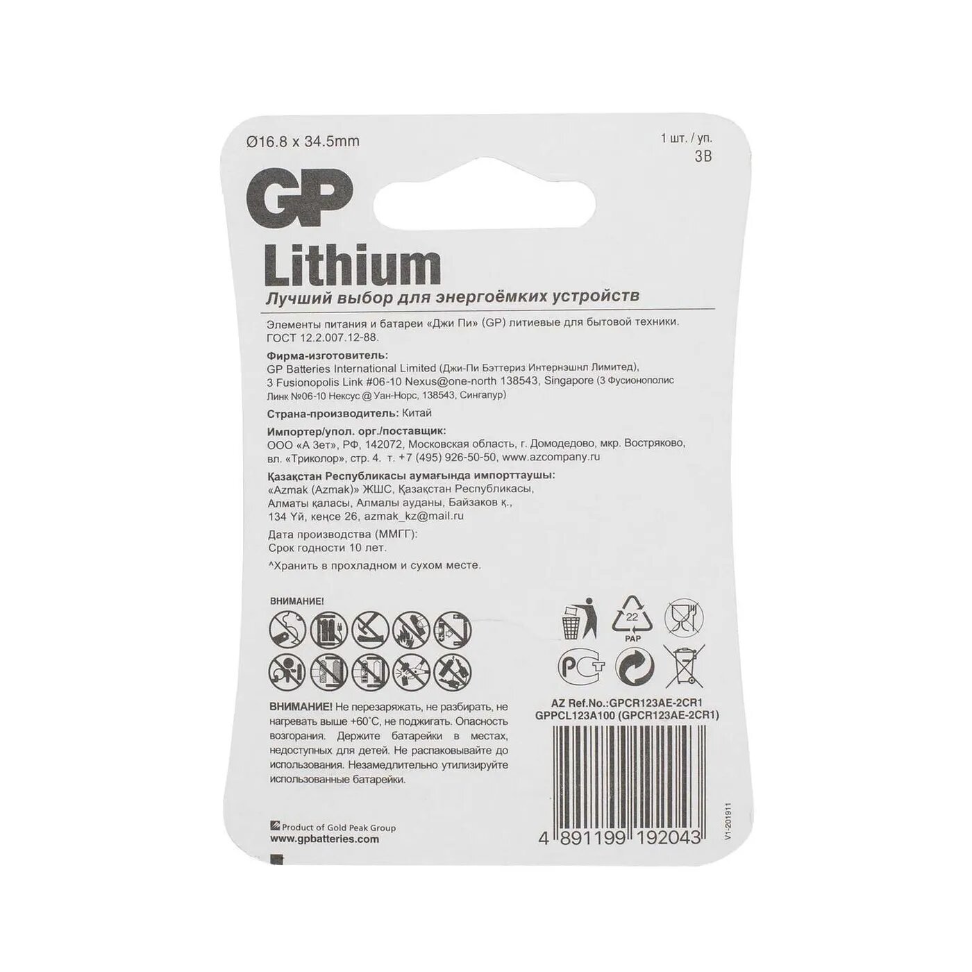 Батарейки GP CR123A CR123A 1 шт CR123AE