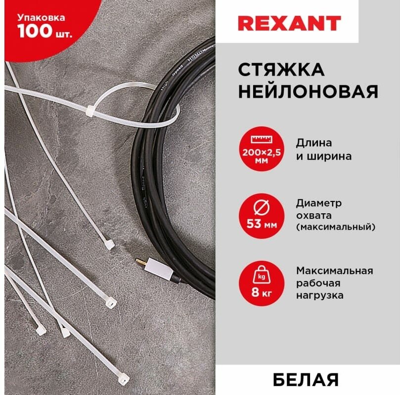 Хомуты Rexant 07-0200 4.0х200мм 100шт белый