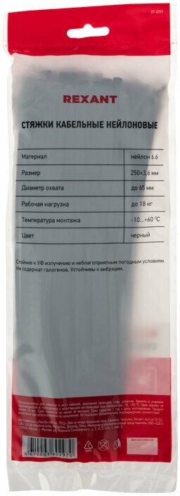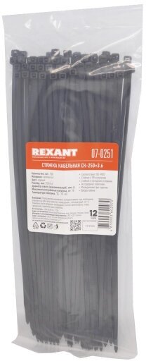 Хомут nylon 250 x 36 мм 100 шт чёрный REXANT 07-0251
