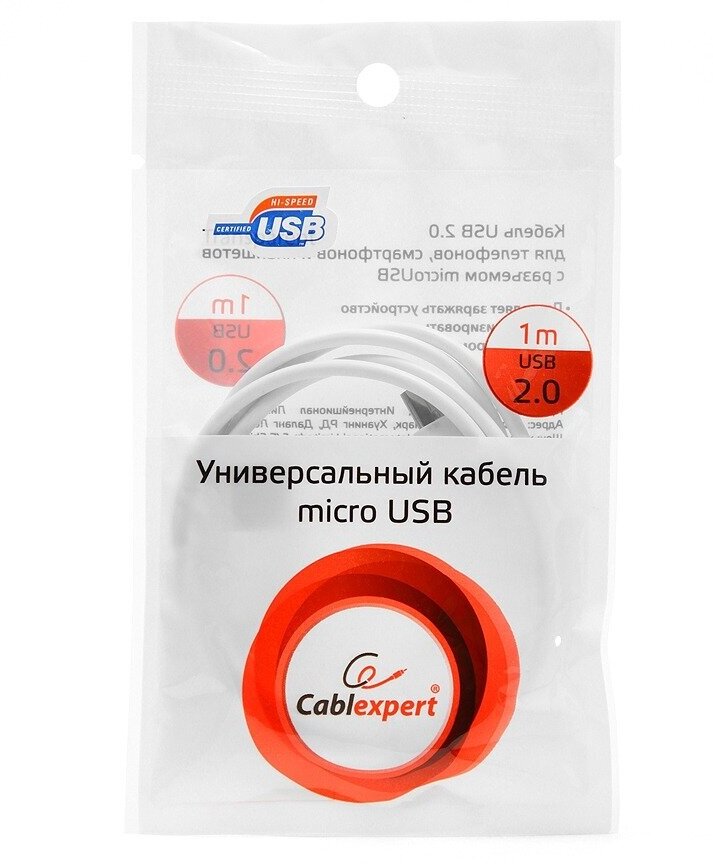 Кабель microUSB 1м Cablexpert CC-mUSB2-AMBM-1MW круглый белый
