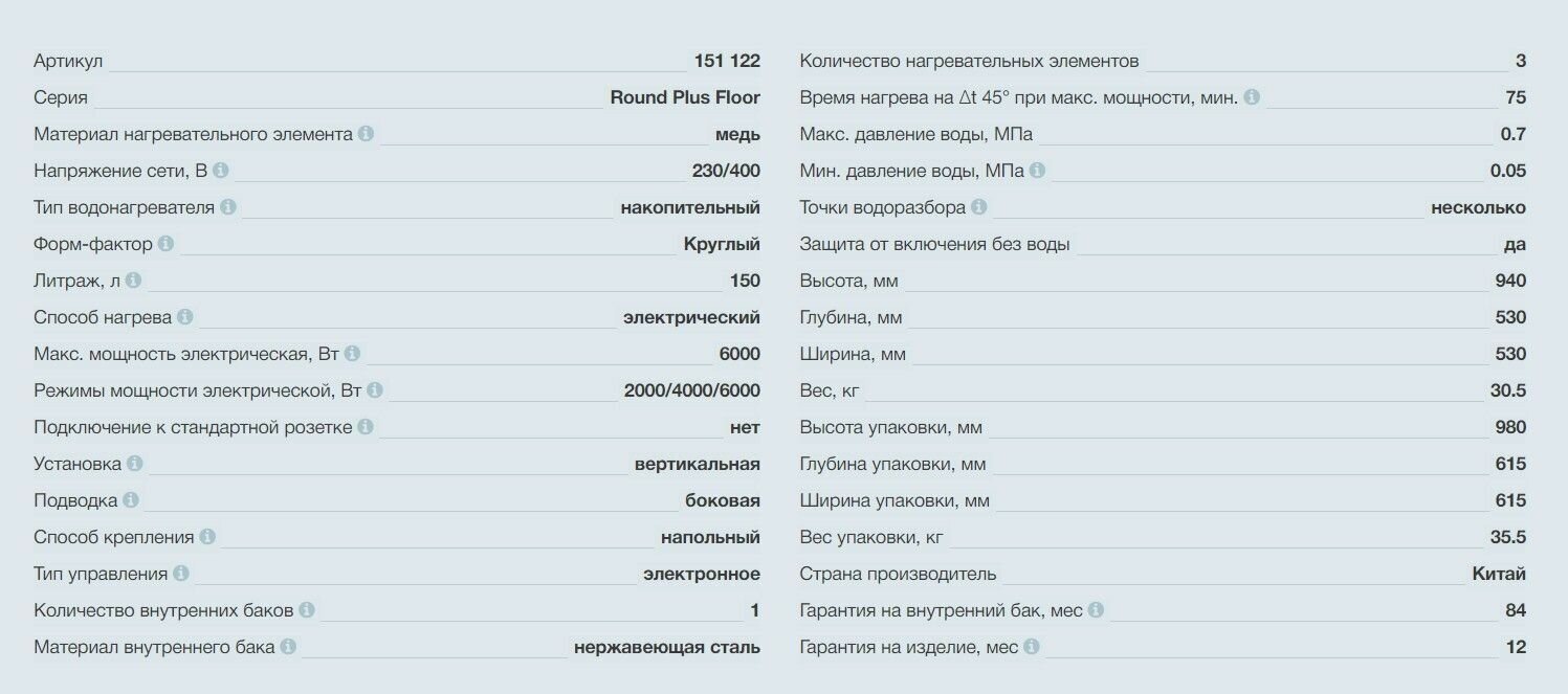 | Оснащение | Дисплей / Индикатор нагрева / Крепления / Предохранительный клапан / Световой индикатор / Термостат |