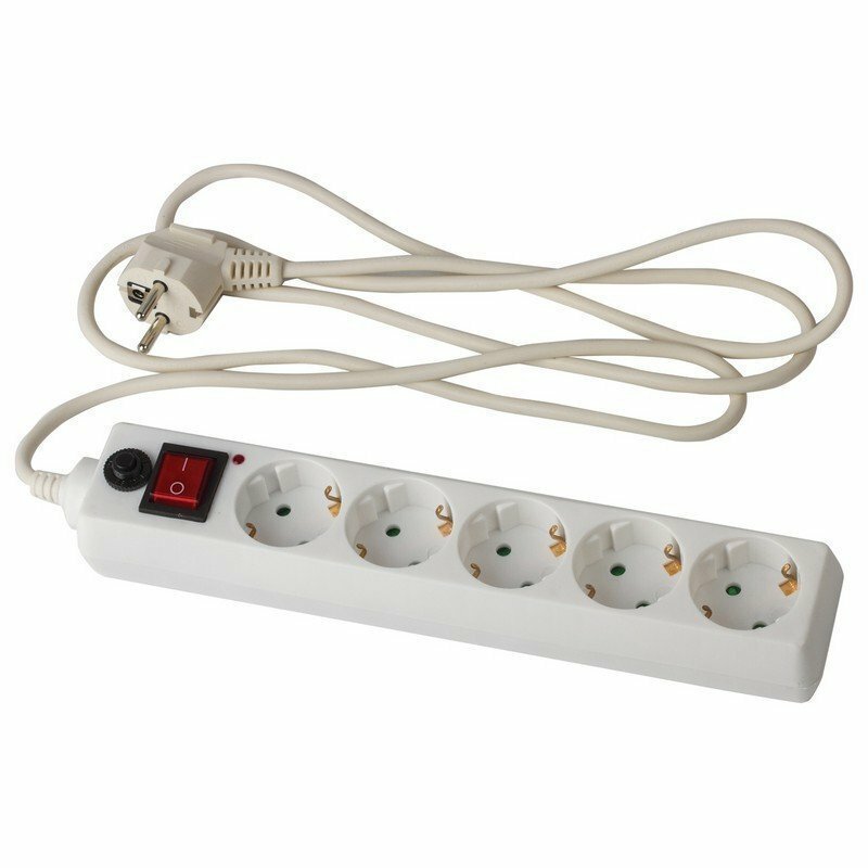 Модель: U-351 5гнезд с заземлением 220В 2.2кВт 3х1.0 выключатель 10А 1.8м