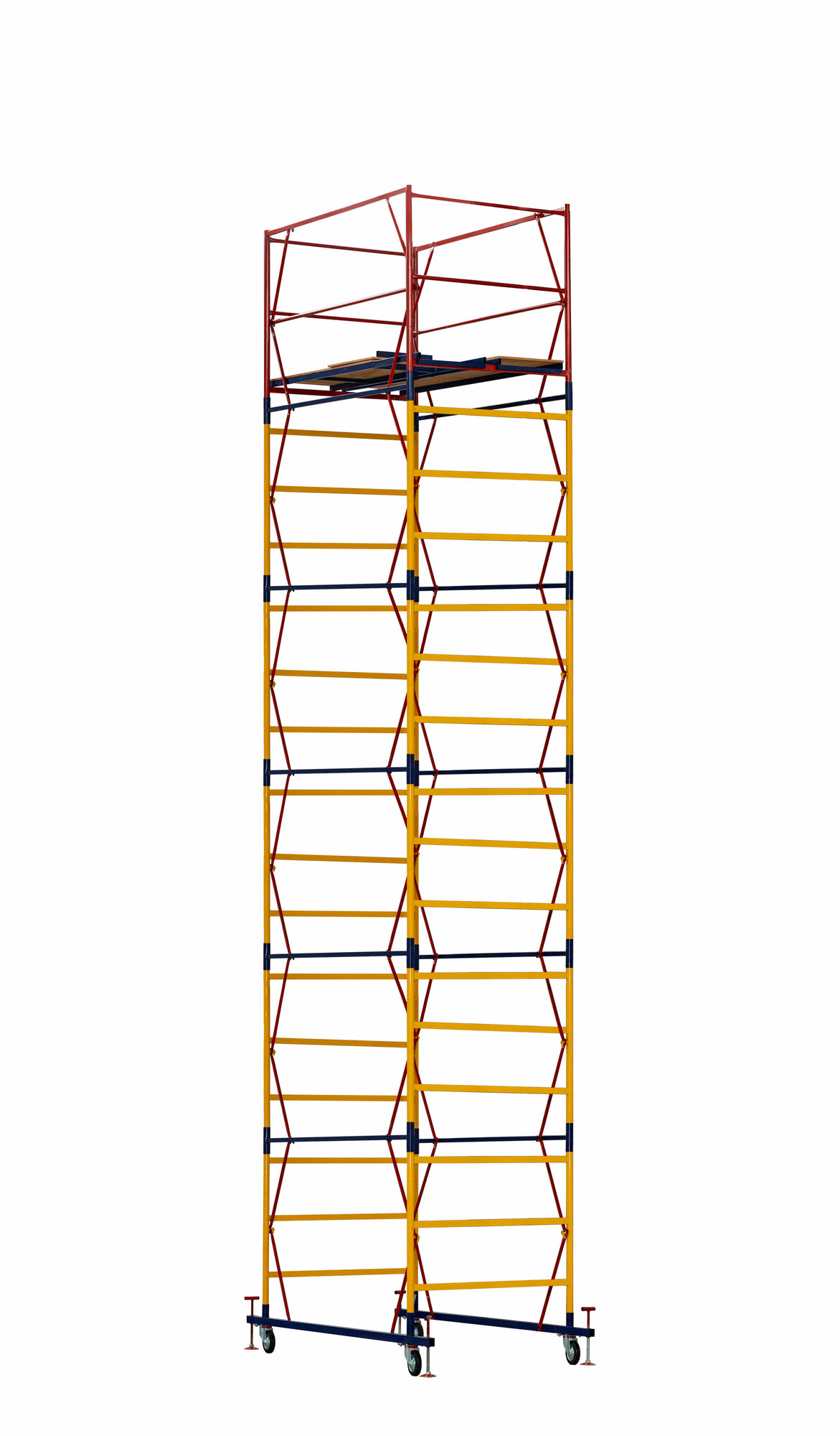 Вышка ВСП-250 шириной 1.2х2.0 метра - универсальная передвижная модель для строительных, ремонтных, монтажных работ как внутри помещения, так и для уличных работ. Легко собирается без необходимости использования специального инструмента (все элементы соединяются флажковыми механизмами). Ее просто перемещать по объекту за счет наличия больших прорезиненных колес, которые также снабжены фиксаторами положения. Позволяют тонко подрегулировать высоту вышки и зафиксировать ее от нежелательных перемещений во время работ. Данную модель вышки можно доращивать по высоте дополнительными секциями до 19 метров (не входят в стоимость). Секции вышки снабжены диагональными металлическими стяжками. Они обеспечивают дополнительную устойчивость при резких порывах ветра. Настил изготовлен из фанеры толщиной 10 мм и имеет люк для безопасного и удобного перемещения во время работ. Если докупить еще один настил, можно работать вдвоем: вышка выдерживает вес до 250 кг. важно: при высоте вышки более 5 метров рекомендуем использовать комплект стабилизаторов для обеспечения лучшей устойчивости и безопасности проводимых на вышке работ (можно приобрести дополнительно). Обращаем ваше внимание, что в процессе транспортировки вышка может получить визуальные потертости, царапины и прочее, что никак не влияет на ее эксплуатационные характеристики и не признается браком.
