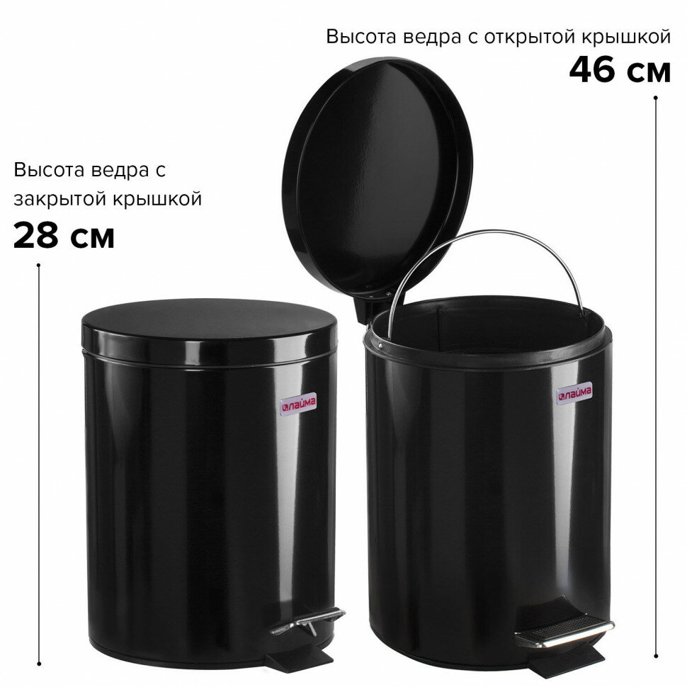 Ведро-контейнер для мусора объемом 5 литров. Изготовлено из высококачественной стали со специальным антикоррозийным покрытием. Оборудовано педалью. Внутреннее съемное пластиковое ведро имеет удобную рукоятку для извлечения. Не нужно прикасаться к крышке руками – чтобы открыть мусорное ведро, достаточно нажать ногой на педаль. Преимущества использования: удобство, компактность, эстетический вид, функциональность.