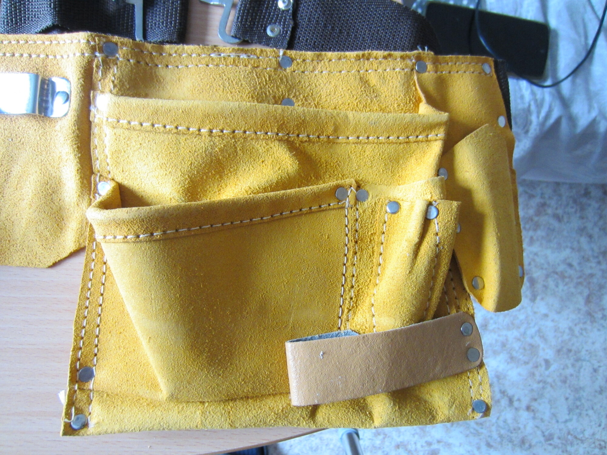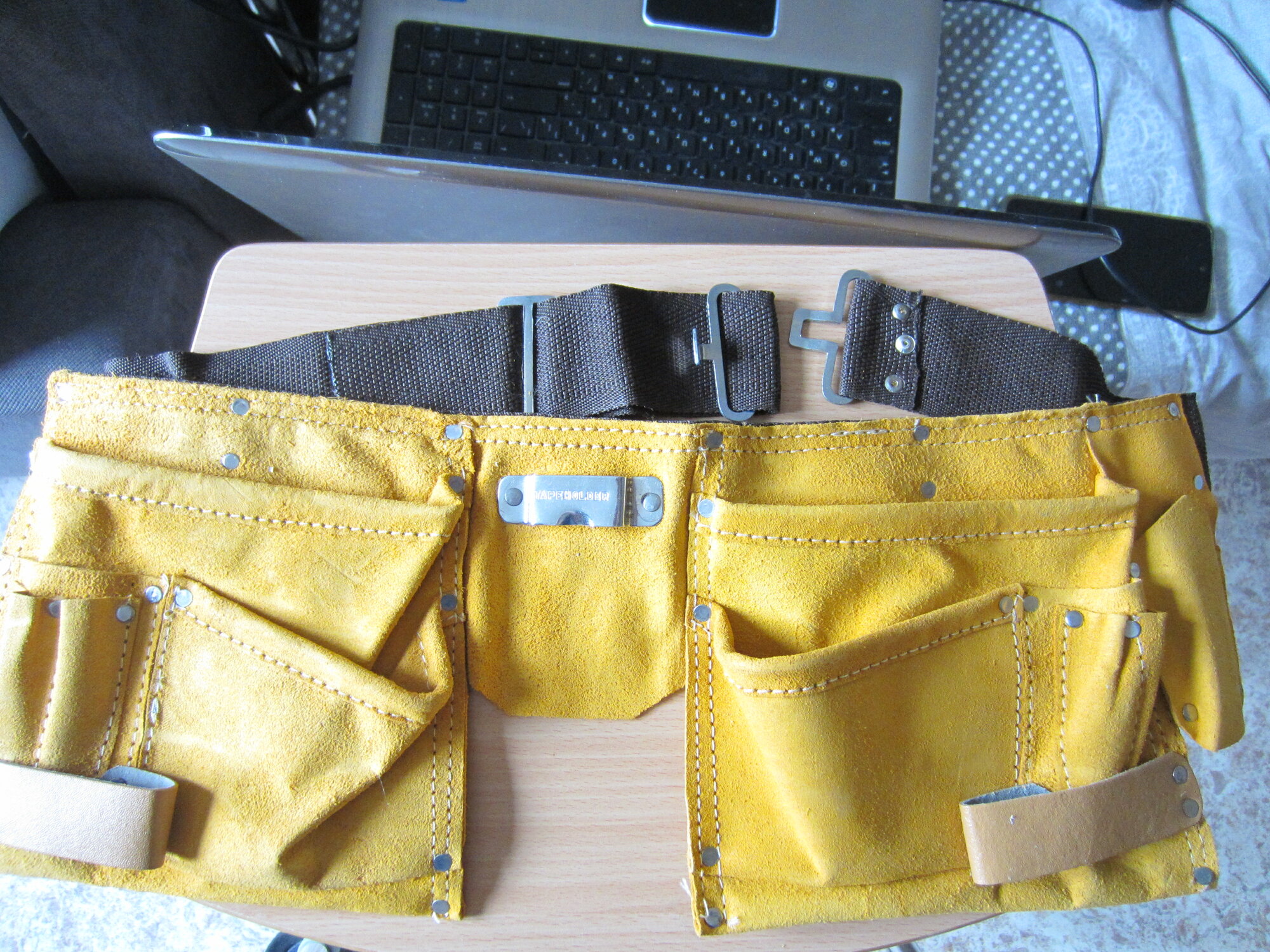 Предназначена для фиксации и удержания небольшого ручного инструмента, расходных материалов и крепежных элементов. В комплект пояса входят две поясные сумки из натуральной кожи с карманами разных размеров, а также металлический держатель для подвешивания молотка. Длина ремня может быть отрегулирована для более комфортного использования.