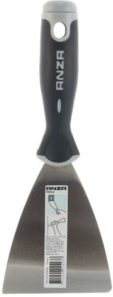 Стальной шпатель Anza состоит из удобной эргономической ручки с несколькими зонами захвата и лезвия из качественной нержавеющей стали. Инструмент отлично подходит для работы с деревянными поверхностями и подготовки стен к отделке (например, снятие обоев или лакокрасочного покрытия), а также для нанесения замазки, герметиков, красок и т. д. Чтобы при проведении ремонтных работ дотянуться до верхней части стены, стальной шпатель можно использовать совместно с удлинителем Anzа. Товар разработан для покупателей, для которых важно качество отделки.Подходит для Подготовка стенРабота с деревянными поверхностямиШирина, мм 100