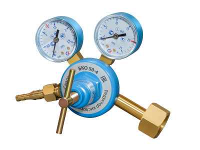 Редуктор кислородный БКО 50М Сварог – это надежное и качественное оборудование для понижения давления поступающего из баллона газа. Он предназначен для использования в газопламенной обработке и других смежных процессах.Особенностью данного редуктора является армированная мембрана Ø40 мм, которая обеспечивает его высокую прочность и долговечность даже при интенсивной эксплуатации в тяжелых условиях. Корпус редуктора испытан давлением 70 МПа, что гарантирует его надежность и безопасность использования.Редуктор оснащен входным фильтром из латуни, который обеспечивает надежную защиту редуцирующего узла. Манометры, установленные на редукторе, являются средством измерения и имеют информацию о поверке, размещенную в Федеральной государственной информационной системе Росстандарта «аршин».Редуктор кислородный БКО 50М Сварог подходит для использования с баллонами с рабочим давлением до 20 МПа. Максимальное рабочее давление газа составляет 1.25 мПа, а наибольшая пропускная способность – 50 м³/ч.Редуктор имеет компактные габариты (135×140×90 мм) и изготовлен из латуни, что обеспечивает его долговечность и стойкость к коррозии. Вес редуктора составляет всего 0.66 кг, что делает его удобным для переноски и установки.Редуктор кислородный БКО 50М Сварог поставляется в комплекте с двумя манометрами и предохранительным клапаном. Разъем соединения включает в себя вход с гайкой накидной G3/4, выход с M16x1.5 и ниппель 6/9 мм.Редуктор кислородный БКО 50М Сварог – это надежный и качественный инструмент для газопламенной обработки и других процессов, который обеспечит стабильную работу и безопасность на протяжении долгого времени.