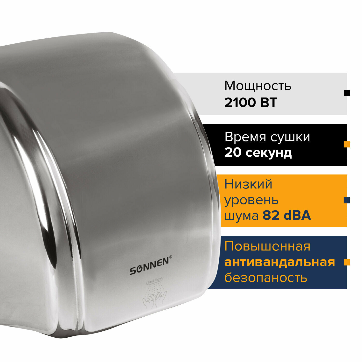 Сушилка для рук Sonnen 2100Вт хром 604195