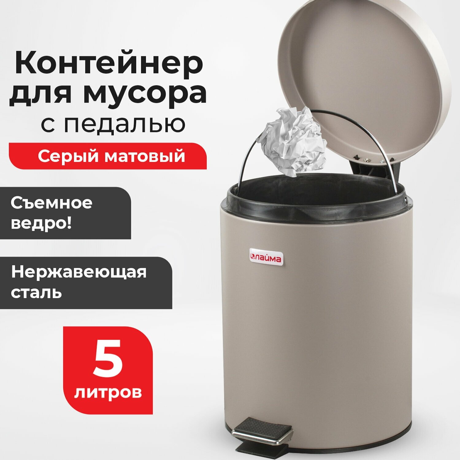 Ведро-контейнер для мусора ЛАЙМА 602849