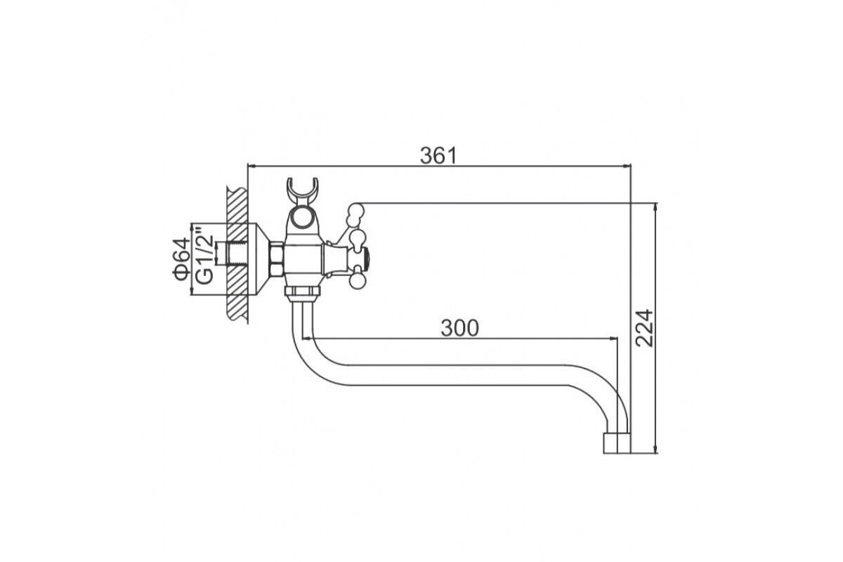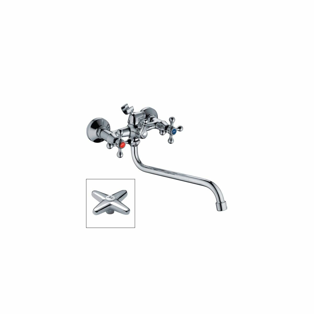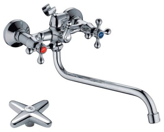 настенным креплением, благодаря чему смеситель надежно фиксируется на выбранной стене и не занимает много места;