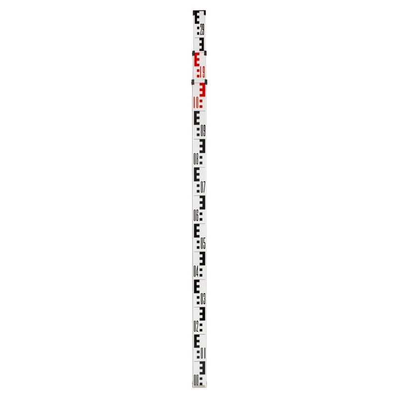Рейка нивелирная AMO представляет собой 5 последовательно выдвигаемых секций на высоту до 5 м, которые вы можете надежно зафиксировать с помощью блокирующей кнопки. Оснащена как Е-градуированной, так и миллиметровой шкалой, что позволяет проводить измерения с точностью до 1 мм. Для достижения максимально вертикального положения нивелирная рейка оснащена пузырьковым уровнем.